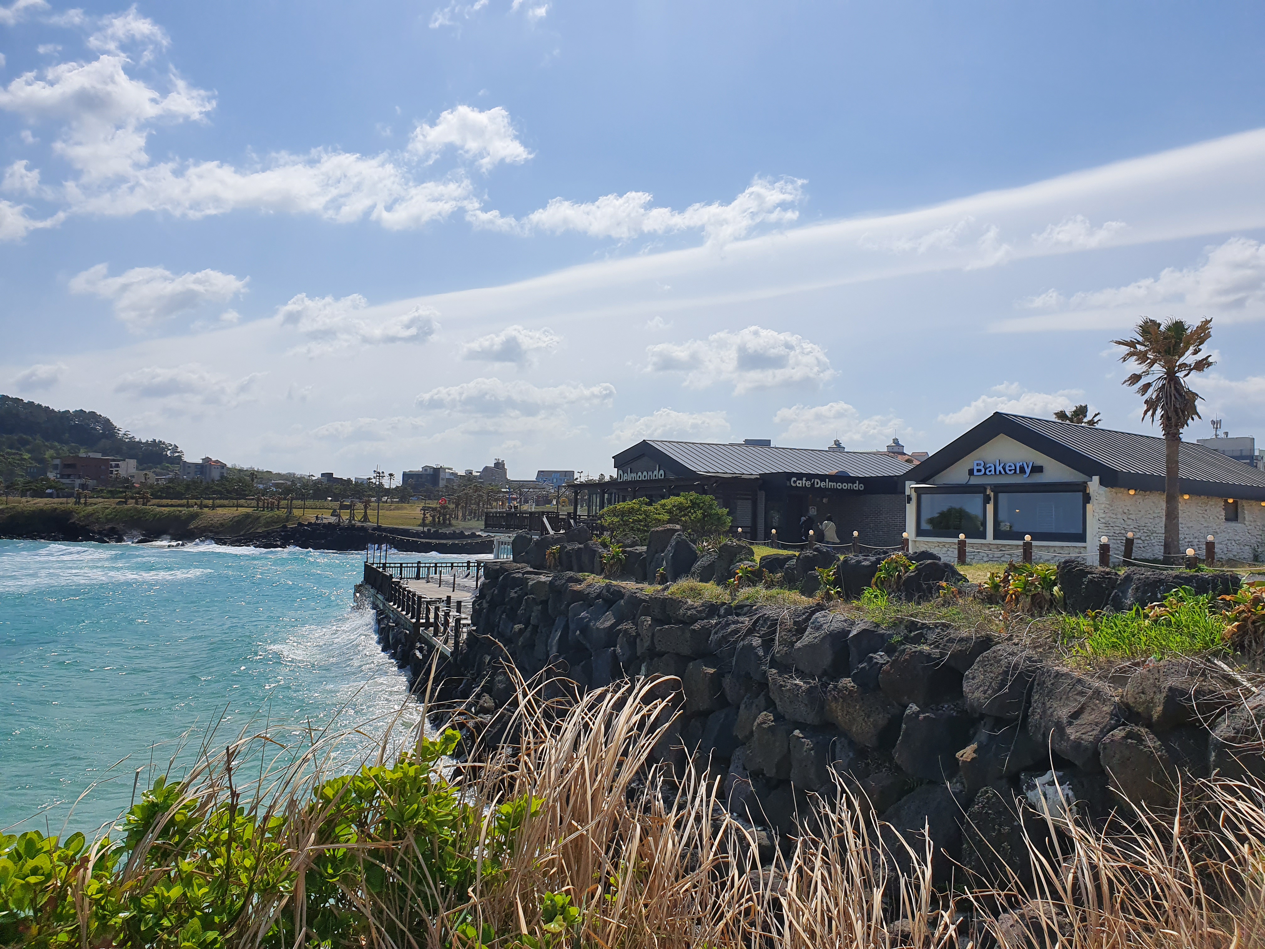 함덕해수욕장 바로 곁에 위치한 카페 델문도입니다. 개인적으로 생각컨데, 제주를 통틀어 바닷가에 위치한 카페중에서 가장 좋은 입지조건을 가진 곳입니다. 직접 만드는 빵도 상당히 맛있는 곳이라, 커피를 한잔 하면서 분위기를 즐기려는 관광객들이 굉장히 많이 찾고 있어요.