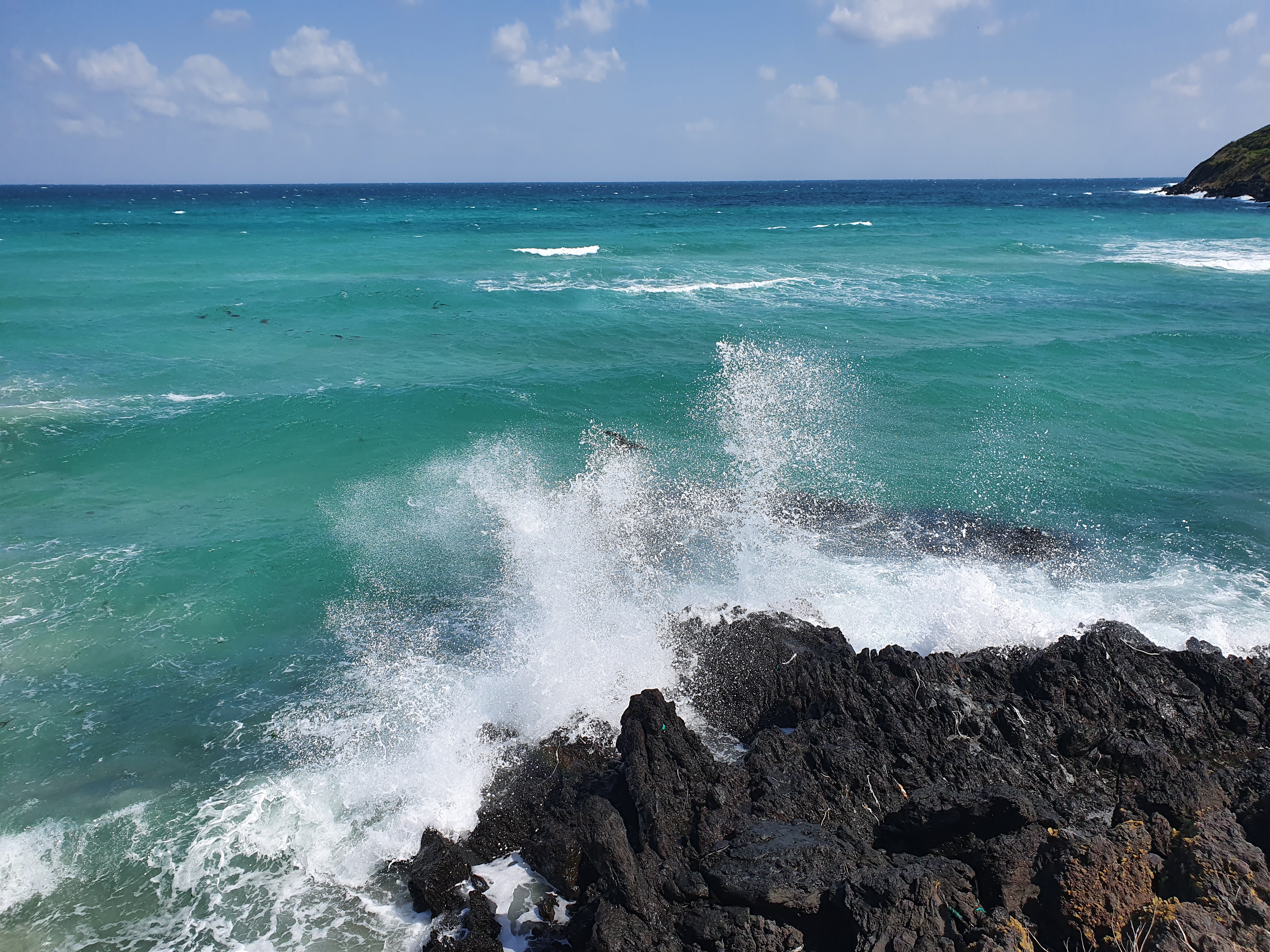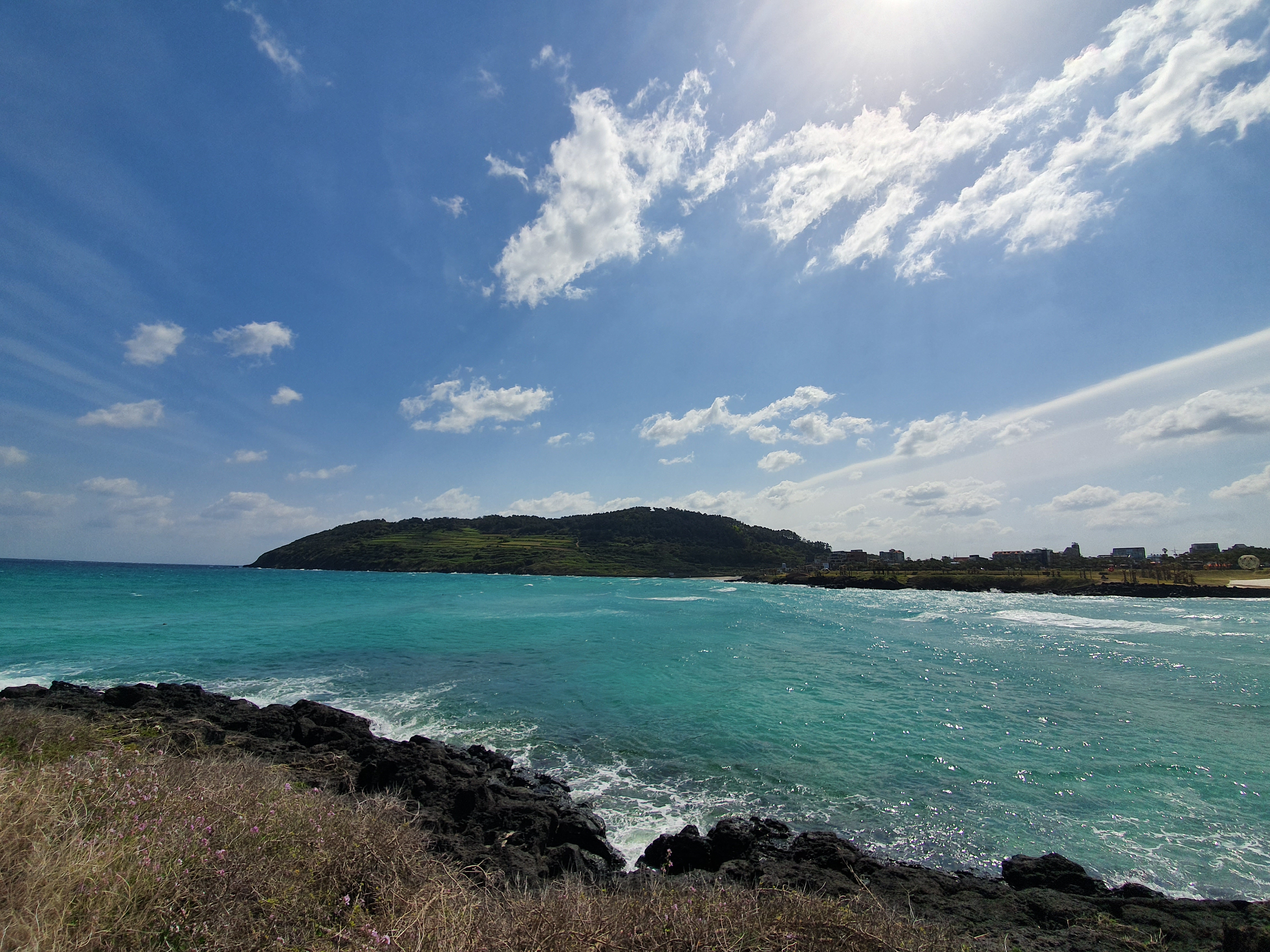 함덕해수욕장 오른편 끝에 위치한 서우봉이 보입니다. 해발 113m 정도되는 기생화산으로, 역사학적으로는 진도에서 피신해 온 삼별초군이 끝까지 저항했던 장소로 알려져 있습니다. 서우봉의 정상에는 조선시대에 만들어진 봉수대의 흔적을 볼 수 있지요
