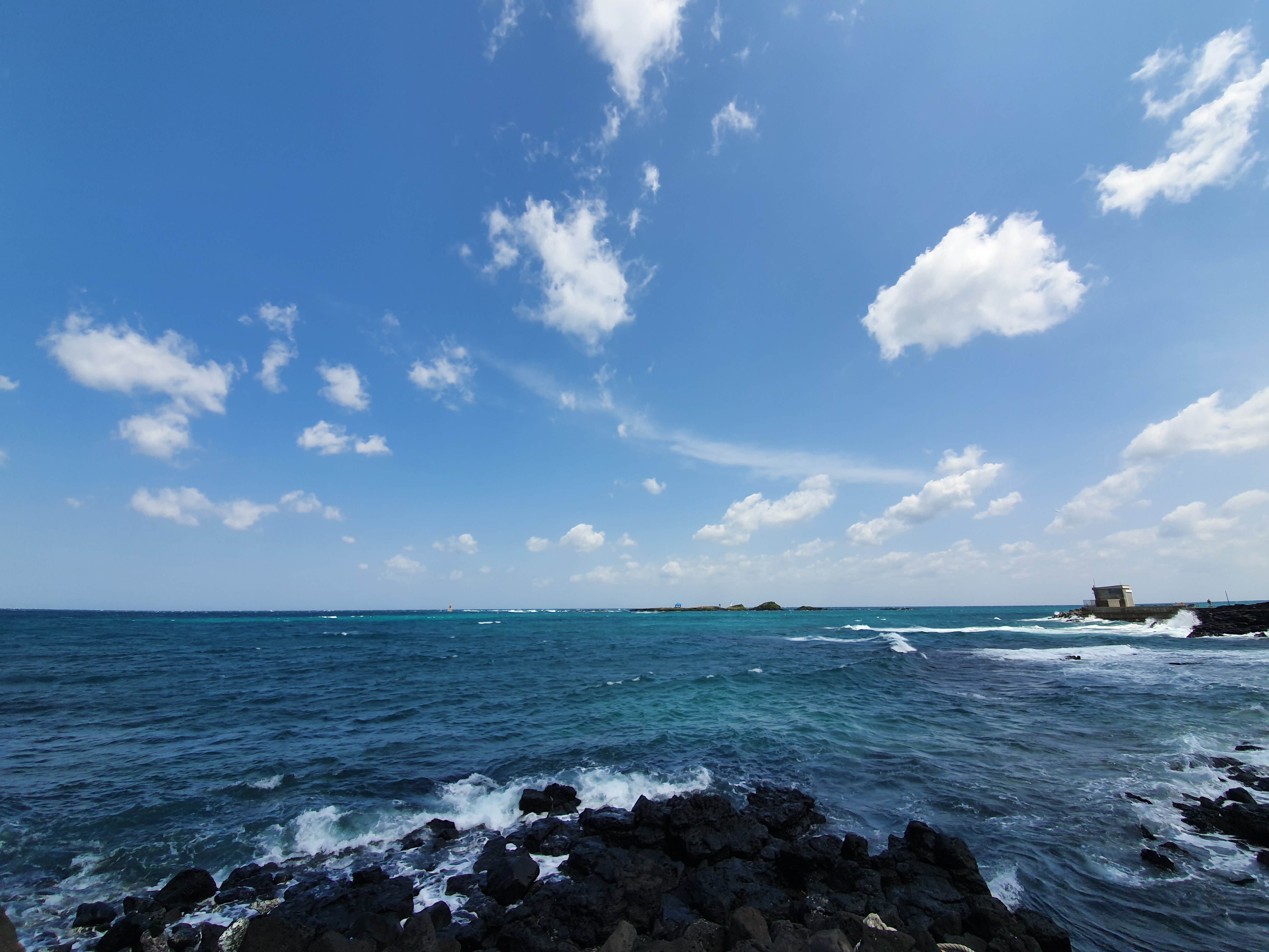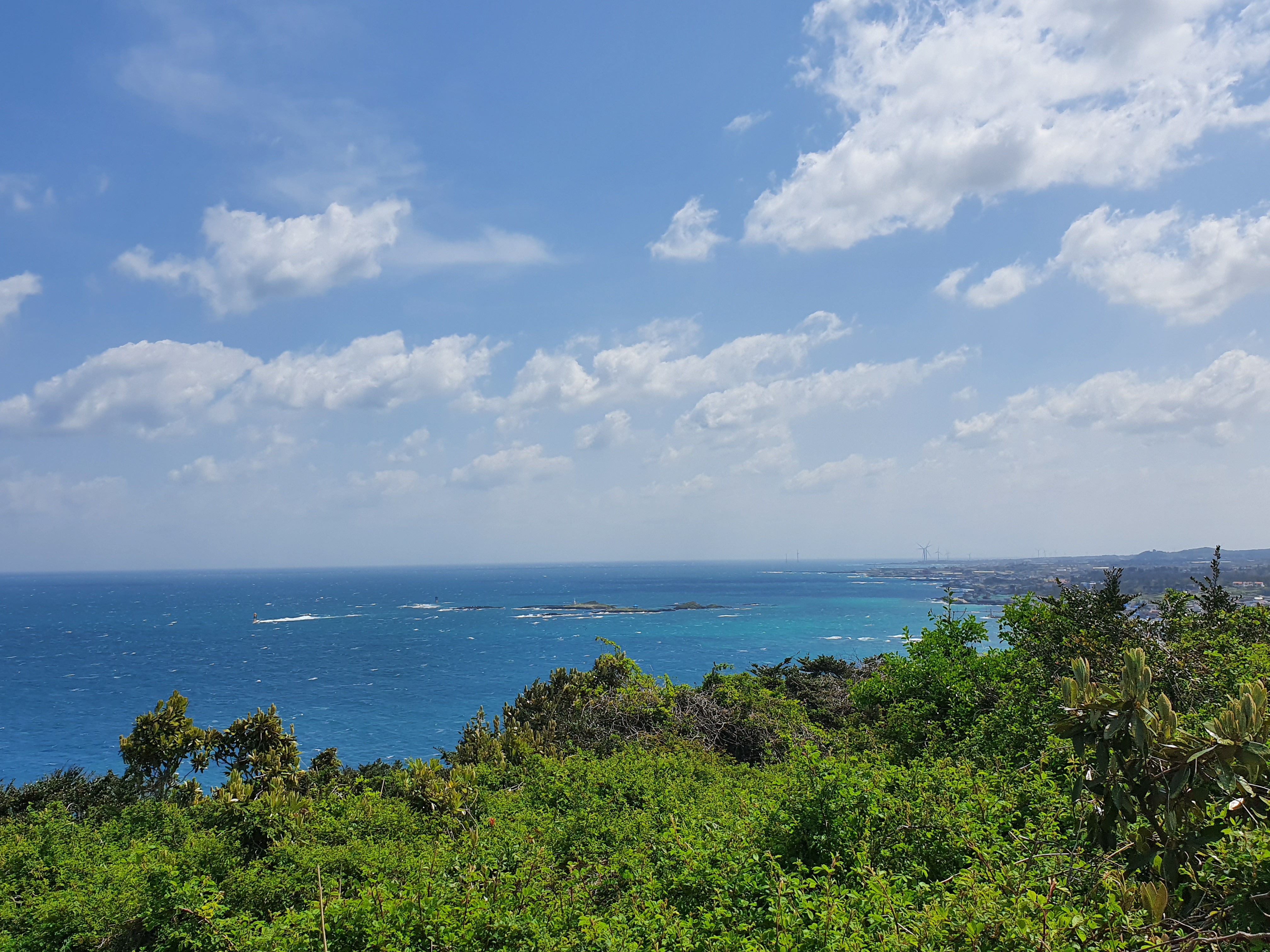 푸르른 하늘과 흰 구름, 이색적인 바다의 컬러, 뜨겁지는 않은 햇살, 그리고 부드럽게 불어오는 바닷바람. 이 모든 것들이 트레킹 하기에는 아주 적합한 조건입니다.