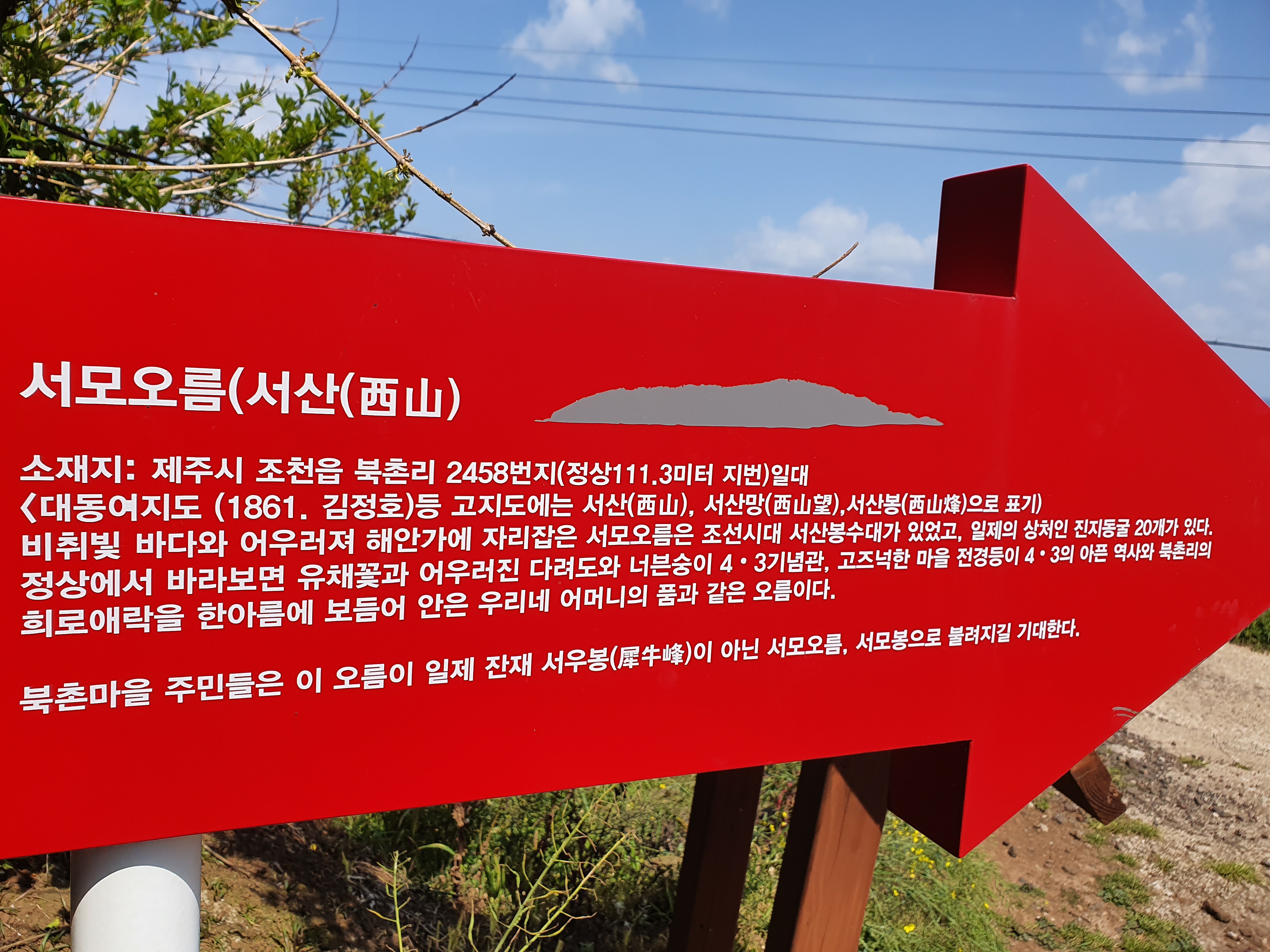 19코스 트레킹 1-2에서 잠깐 설명했던 바와 같이, 현지 주민들은 이 곳 서우봉을 일제의 잔재로 여겨서 "서모오름" 또는 "서모봉" 등으로 불려지기를 기대한다고 합니다.