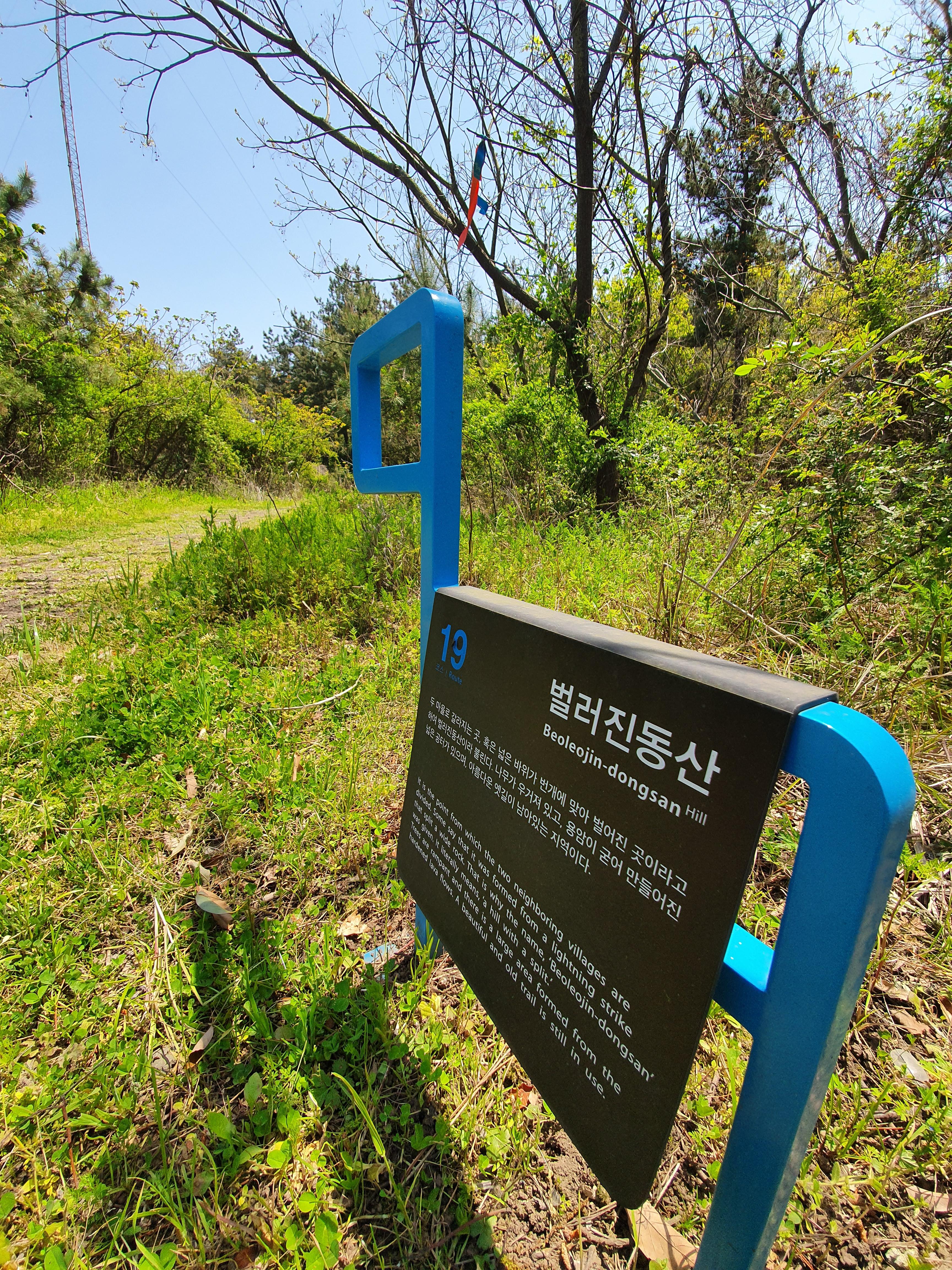 벌러진 동산은 넓은 바위가 번개에 맞아 벌어진 곳, 두 마을이 갈라진 곳이라는 의미를 담고 있는데, 표지판이 발길을 고즈넉한 숲길로 인도하는군요.