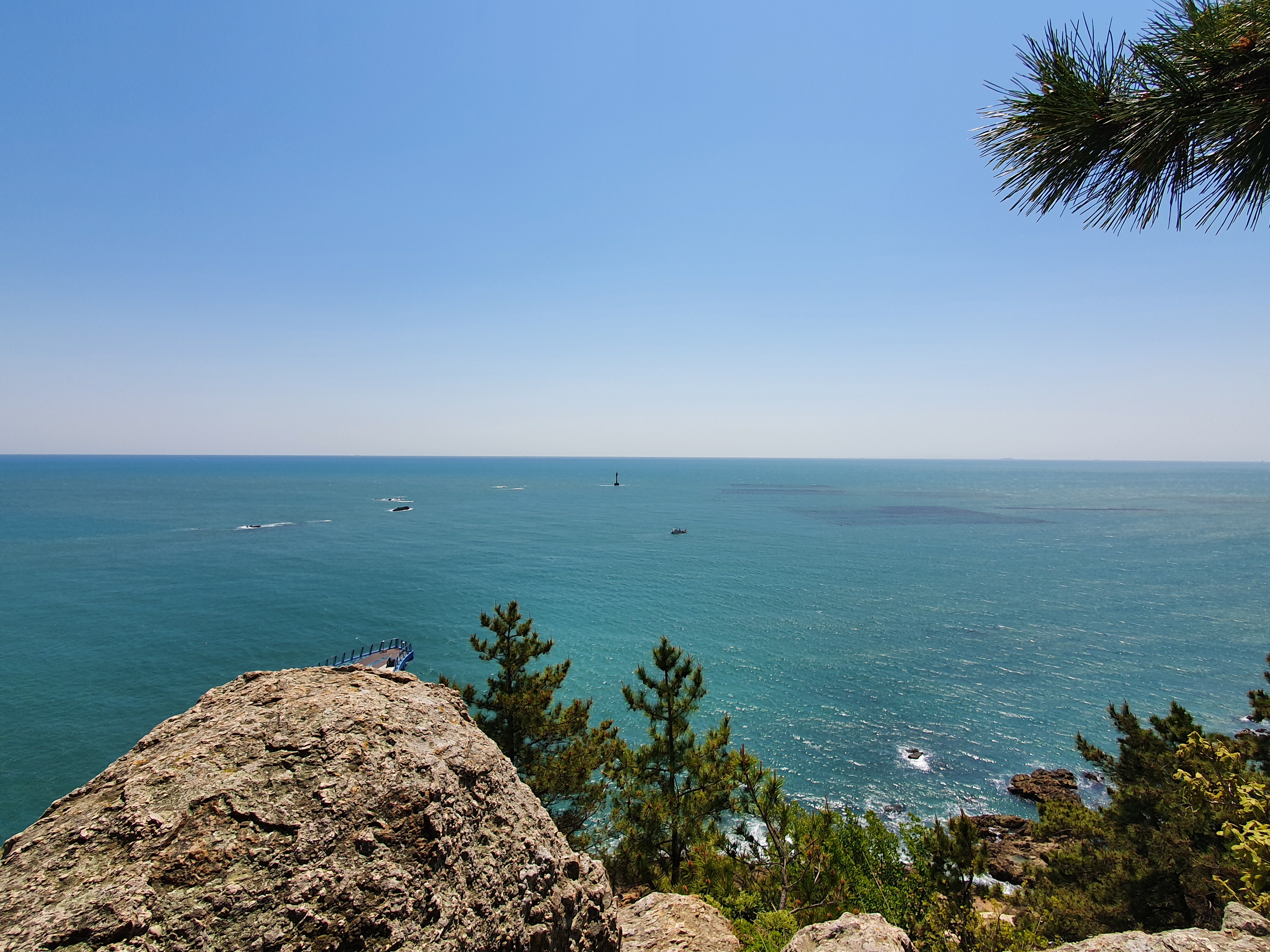 전망대는 청사포 마을의 수호신인 용을 형상화하여 만들어 졌다보니, 형상이 구불구불 유선형입니다. 길이가 거의 70m에 달한다고 들었네요. 어쨌든, 바위 위에 올라서서 발 아래로 넓게 펼쳐진 바다를 보니 가슴 속이 뻥 뚫리는 느낌입니다.