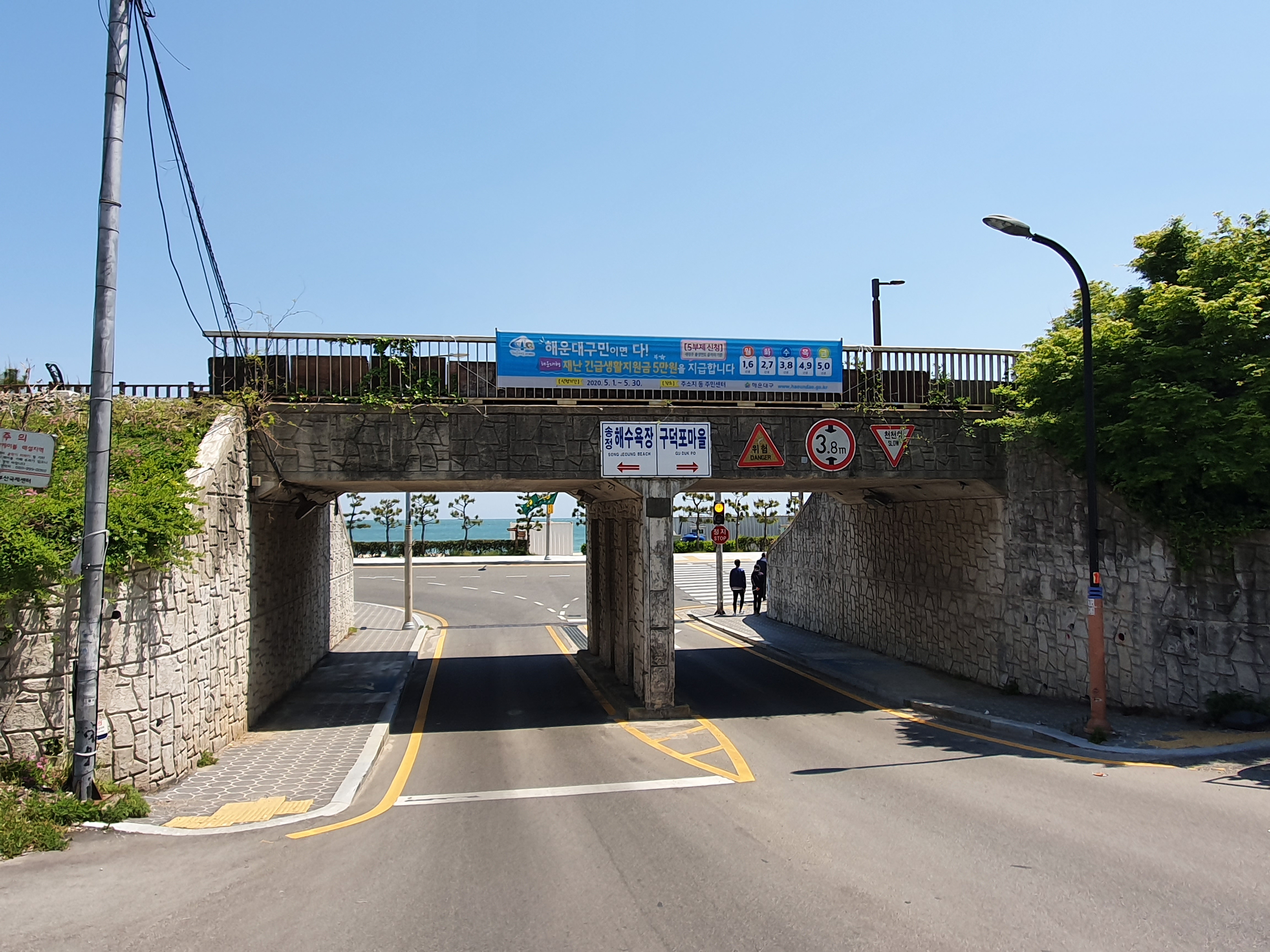 사진 아랫편으로 잘려나가서 보이지 않으나, 페 철로가 있습니다. 이 곳은 무려 1918년에 운행을 시작한 동해 남부선으로 부산과 포항을 연결하던 해안철도였으나, 현재는 복선전철화 사업으로 인해 해운대~송정간의 구간이 이설되면서 이제는 더 이상 열차가 운행하지 않습니다.