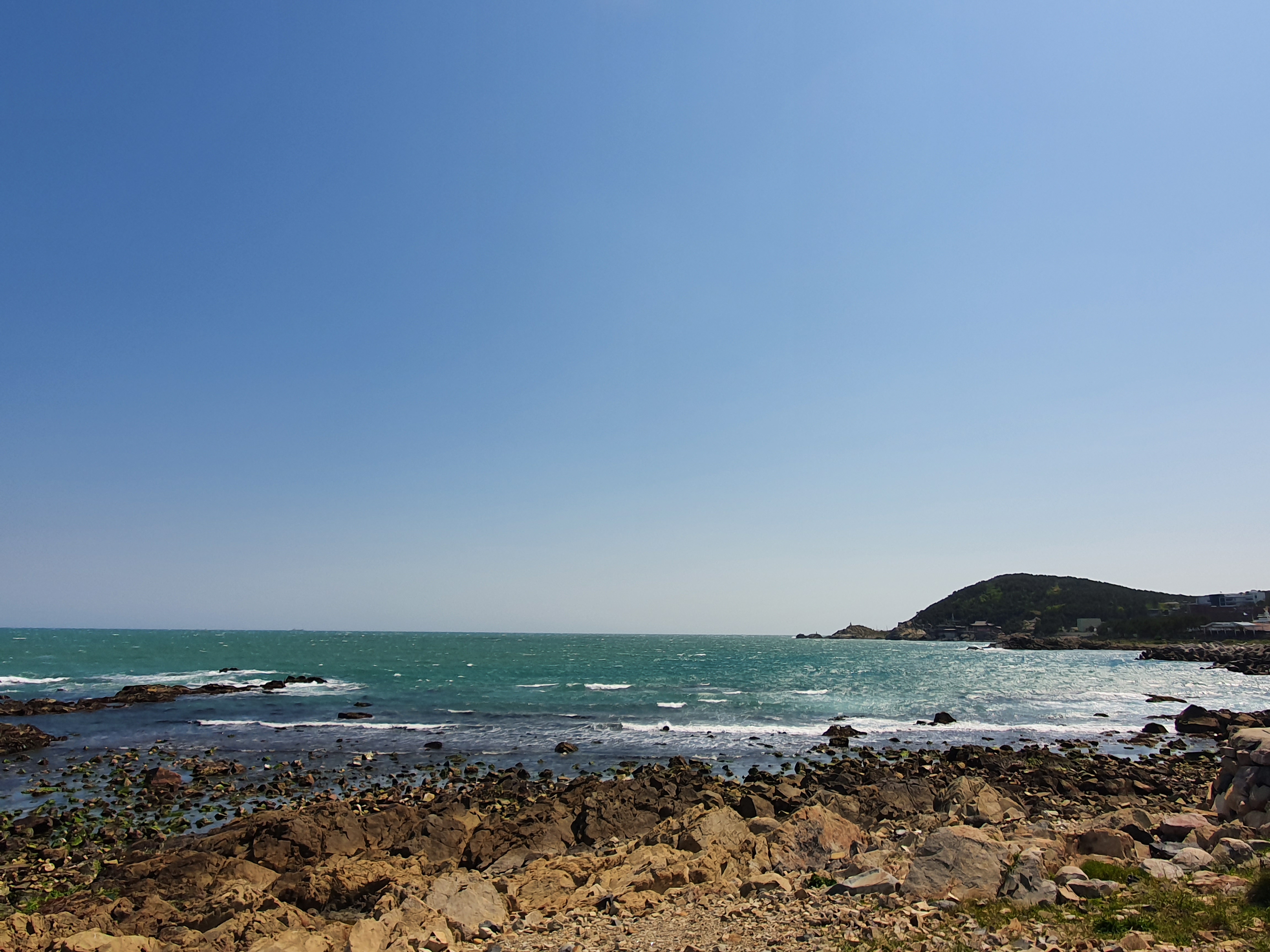 기장군 공수항을 통과합니다. 해파랑길은 시작부터 계속 해안을 따라 걷게 되므로, 늘 우측으로는 바다의 모습을 볼 수 있지요. 평소에는 쉽게 경험하기 어려운 이국적인 풍경입니다.