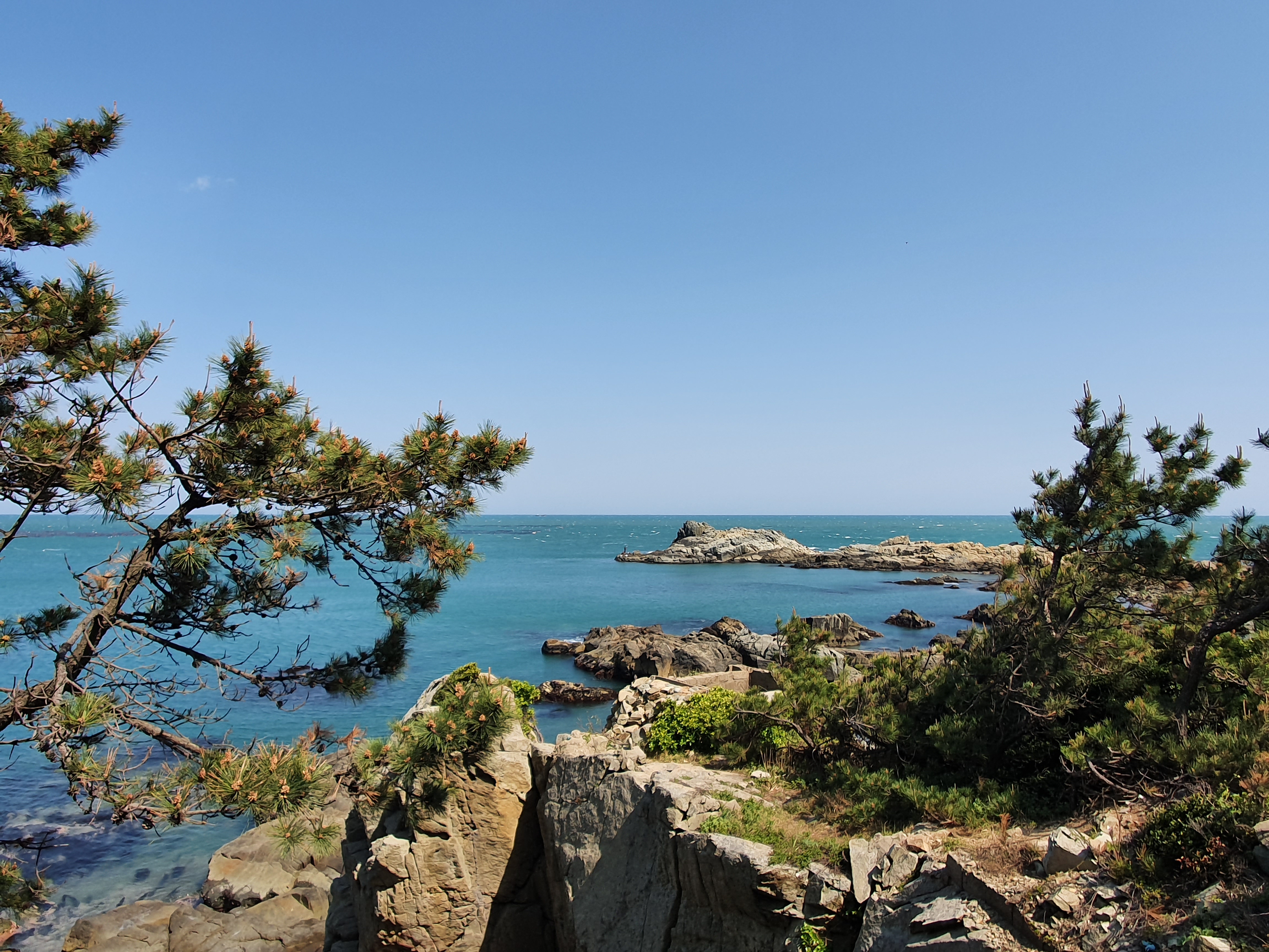 눈이 시리게 푸른 바다의 컬러, 포말을 일으키는 파도가 밀려와 바위에 부딪히며 만들어 내는 소리가 주는 청량감은 해파랑길을 걸을때만 가질 수 있는 어드벤티지입니다.