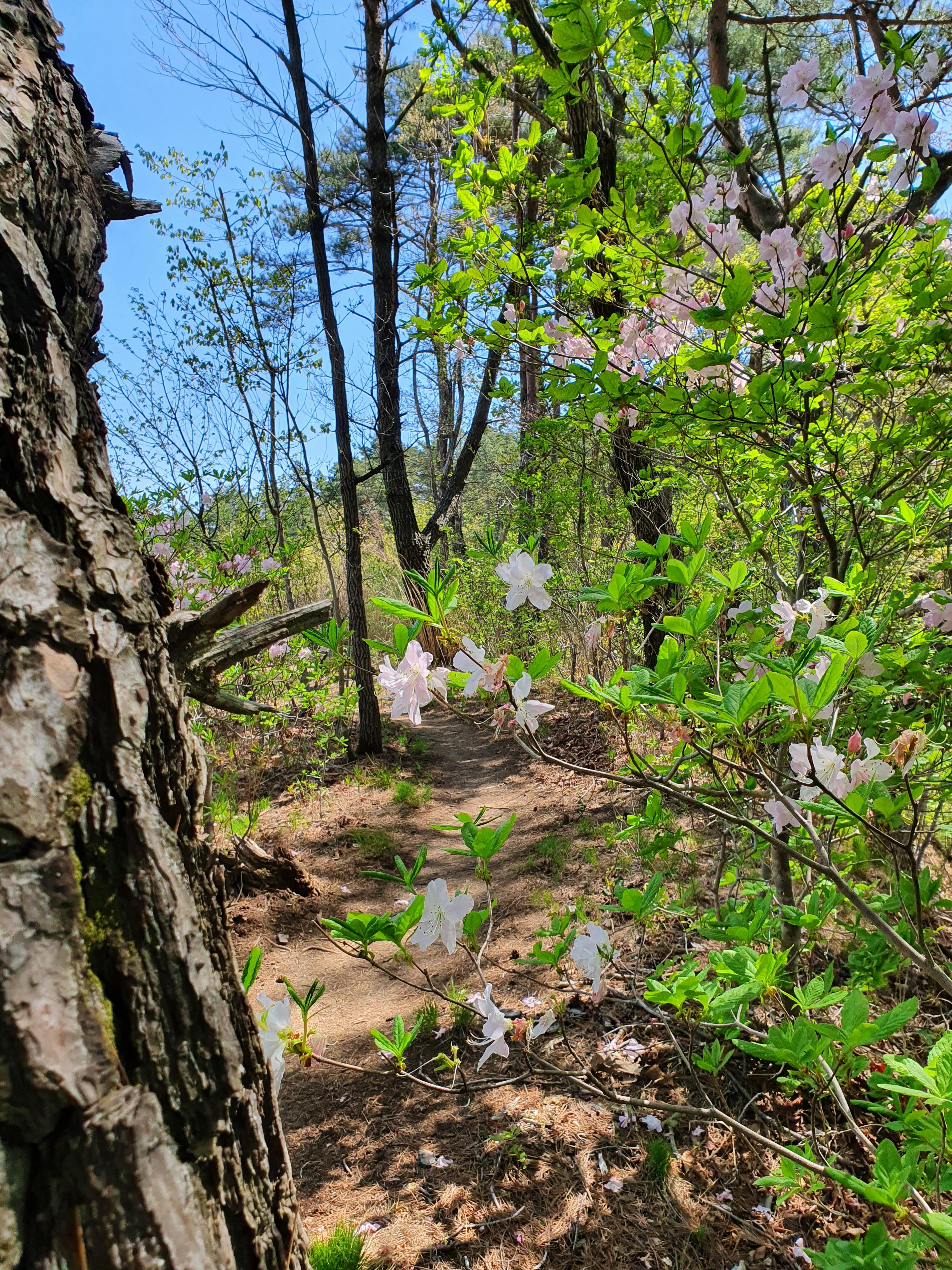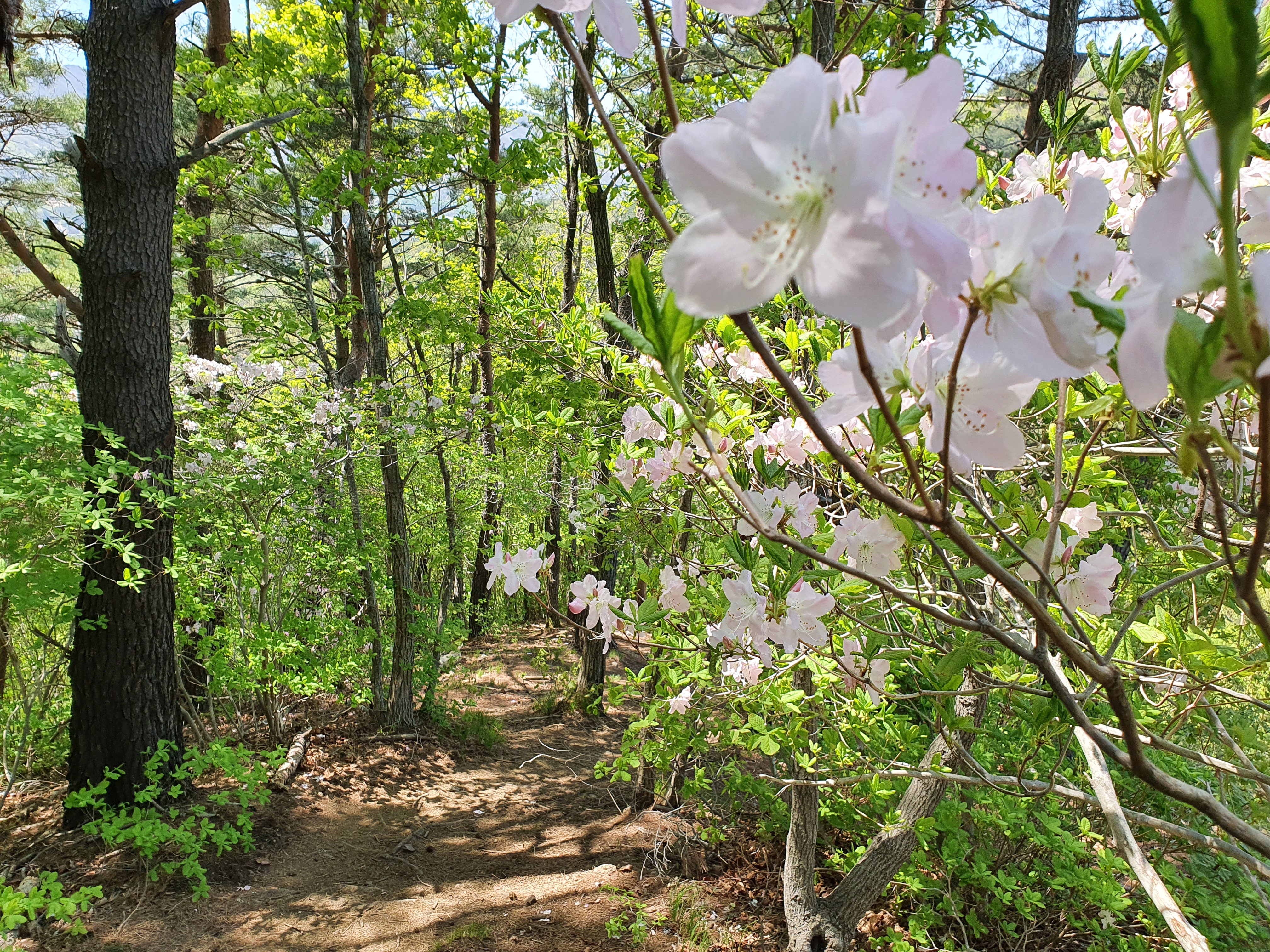 등산로 초입에 분홍색 철쭉이 피어 있습니다. 그나저나, 코로나 사태로 인해, 2020년 전국의 유명한 철쭉 축제들이 모두 취소되어 버렸으니, 참으로 안타까운 일이 아닐수 없네요;;;
