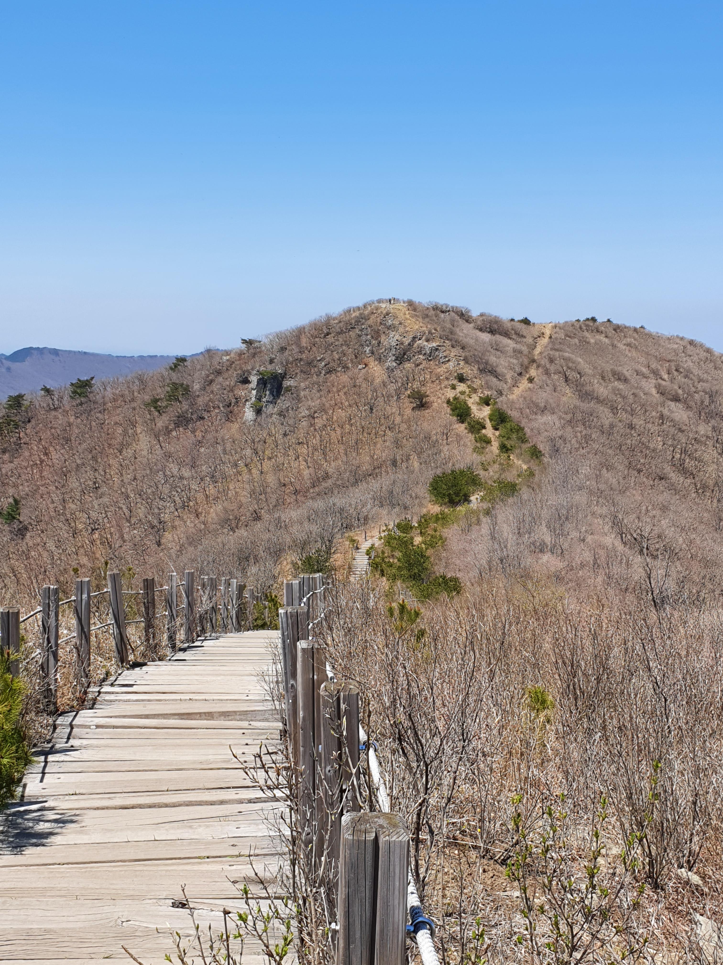 아까 지나왔던 데크길을 가로질러 다시 서봉 방향으로 향합니다. 차량을 외항재에 주차해 뒀으니 다시 픽업해야 하니까요. 이 길을 따라 낙동정맥 로드가 끝없이 이어지는 것이죠.
