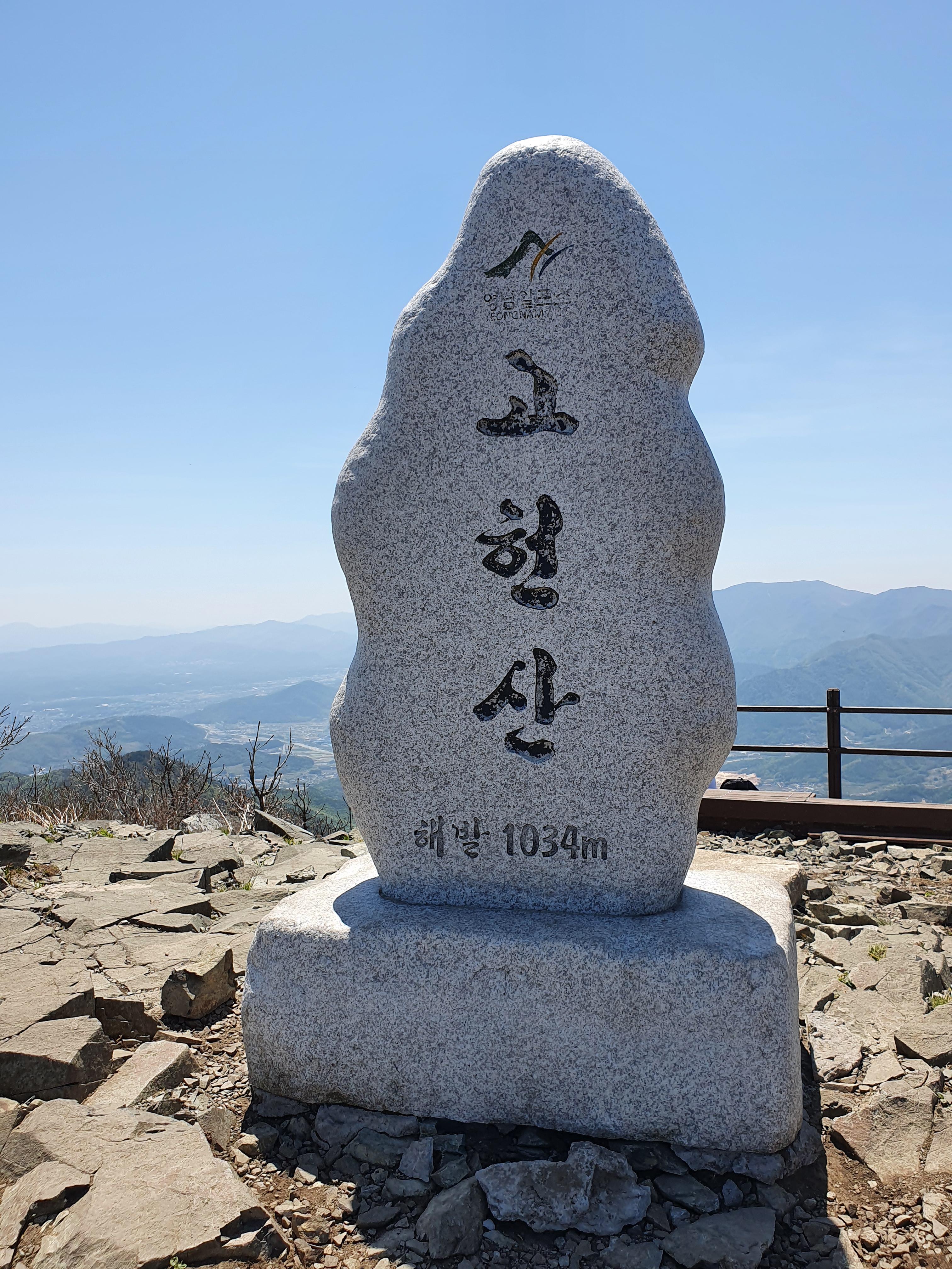 고헌산 정상석입니다. 언제나 느끼는 거지만, 울산광역시 관내에 위치한 정상석은 모두 이 것과 똑같이 생겼는데, 너무 천편일률적이고 개성이 없습니다 ㅎ 물론, 이 곁에 검은색 정상석이 있긴 하지만, 개인적으로는 아까 만난 고헌서봉 정상석처럼 특색있는 타입을 선호합니다.