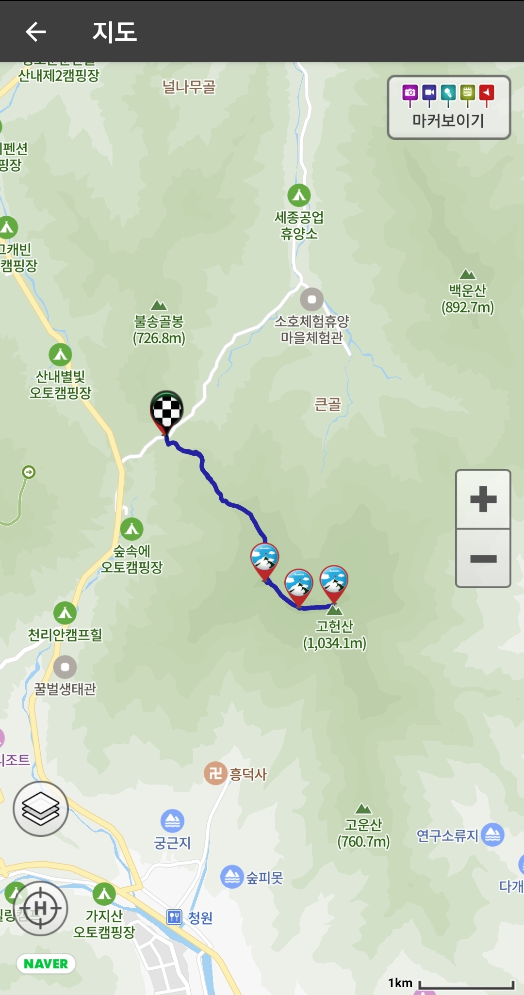 고헌산 정상에서 출발지점이었던 외항재 까지 3km, 남쪽 사면에 위치한 고헌사까지도 3km 거리입니다. 경사도는 여기나 거기나 도찐개찐이죠 ㅎ