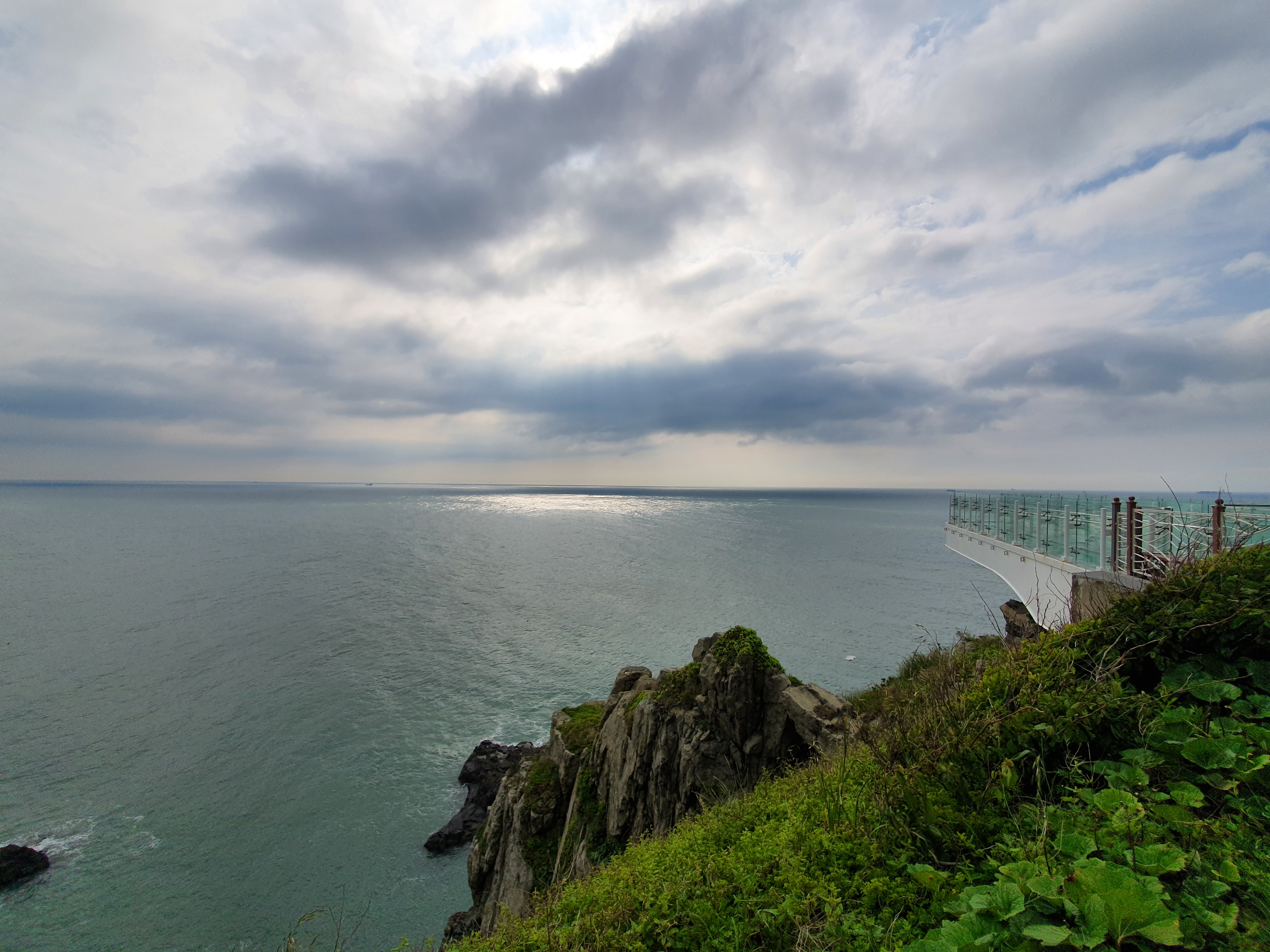 스카이워크 앞 바다에 반짝이는 햇볕이 떨어지고 있습니다. 빛내림 현상은 아니고, 이건 뭐라고 불러야 할까요?