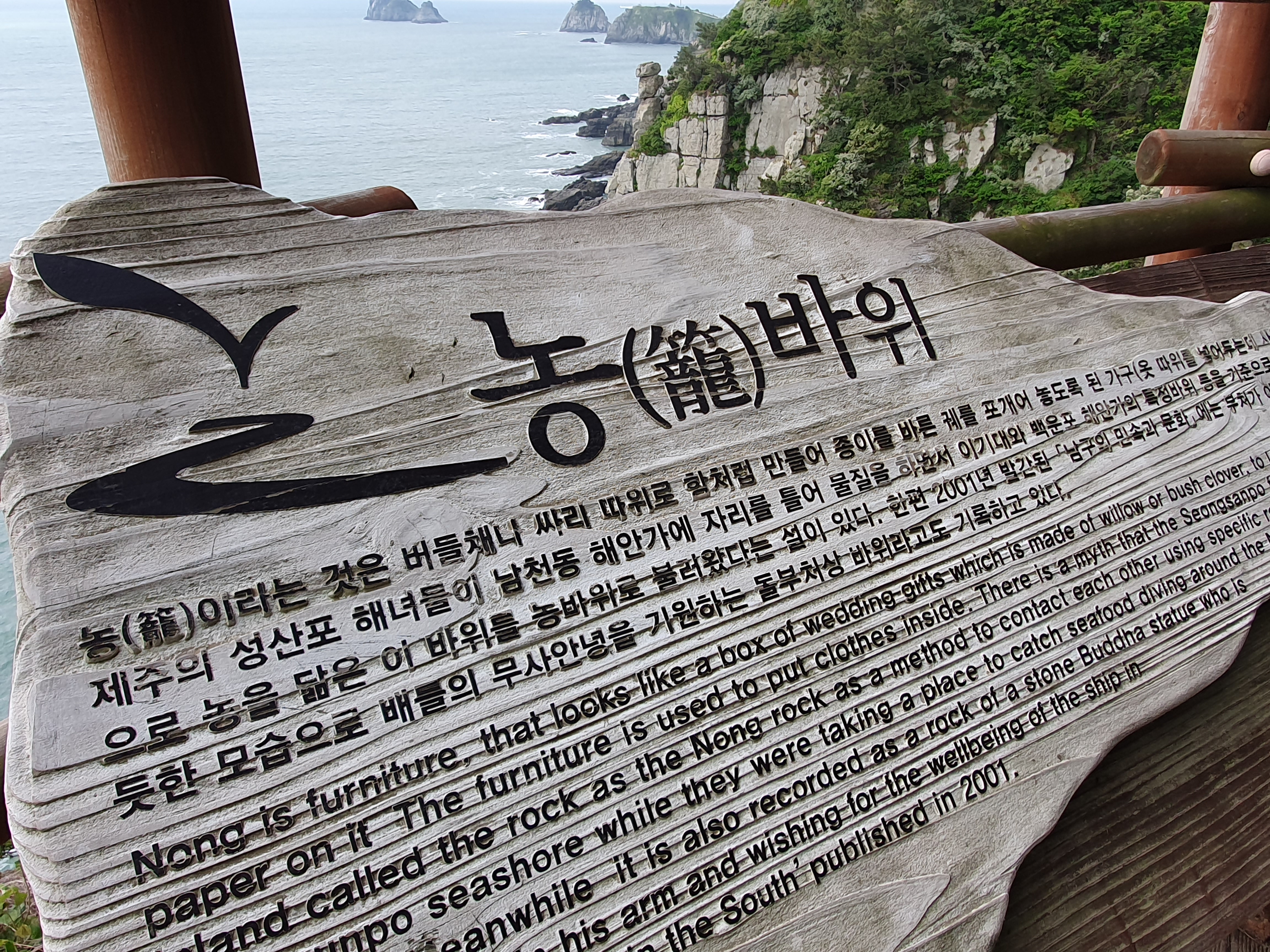 역시나, 이기대는 천혜의 해안 절경을 보여줍니다. 저 멀리 여러 개의 돌이 포개진 신기한 바위의 이름이 바로 농바위입니다.