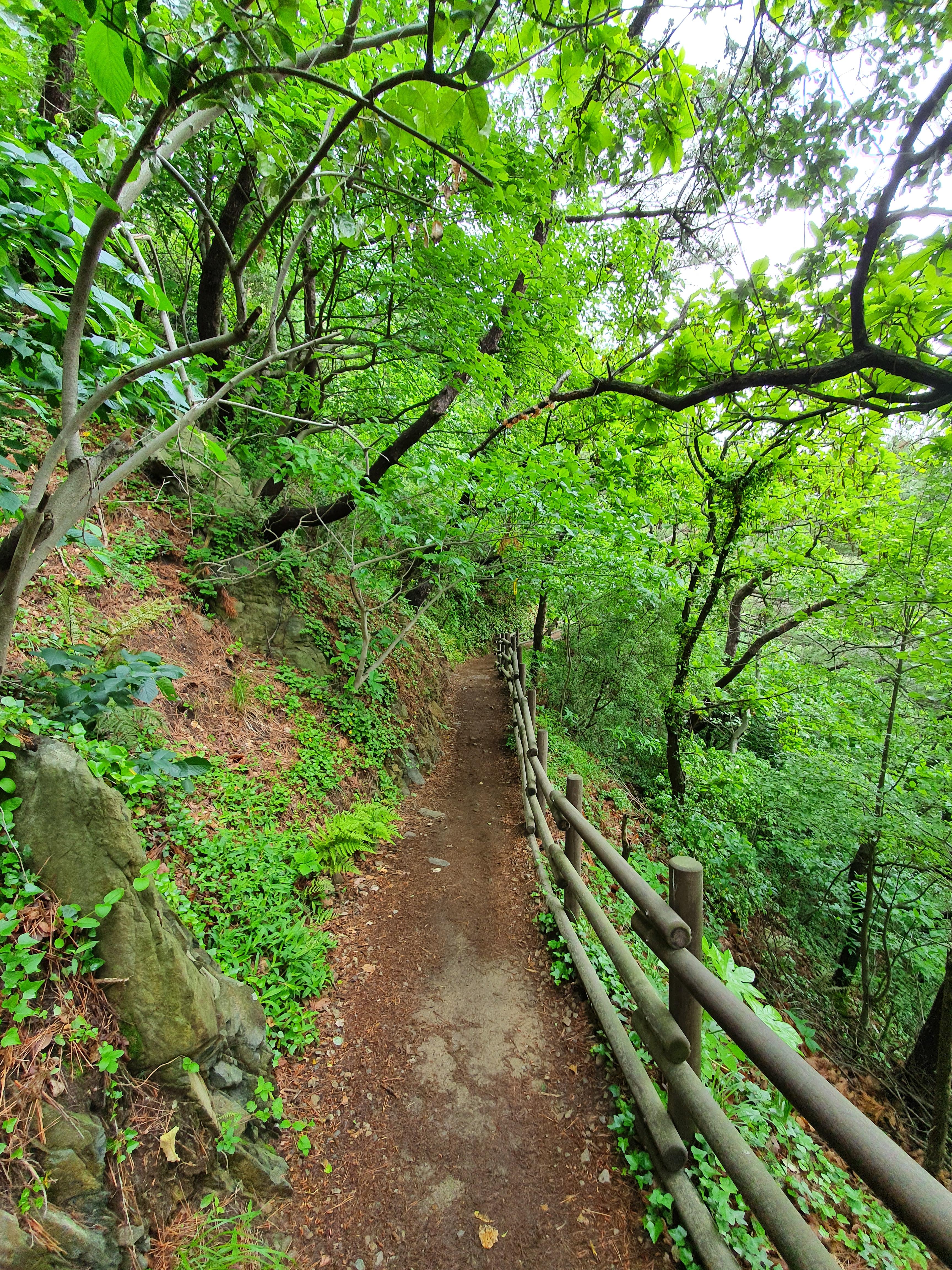 좁은 오솔길에 가깝지만, 나무 그늘 아래 이동할 수 있고 고저차가 크지 않아 편안하게 느껴집니다.