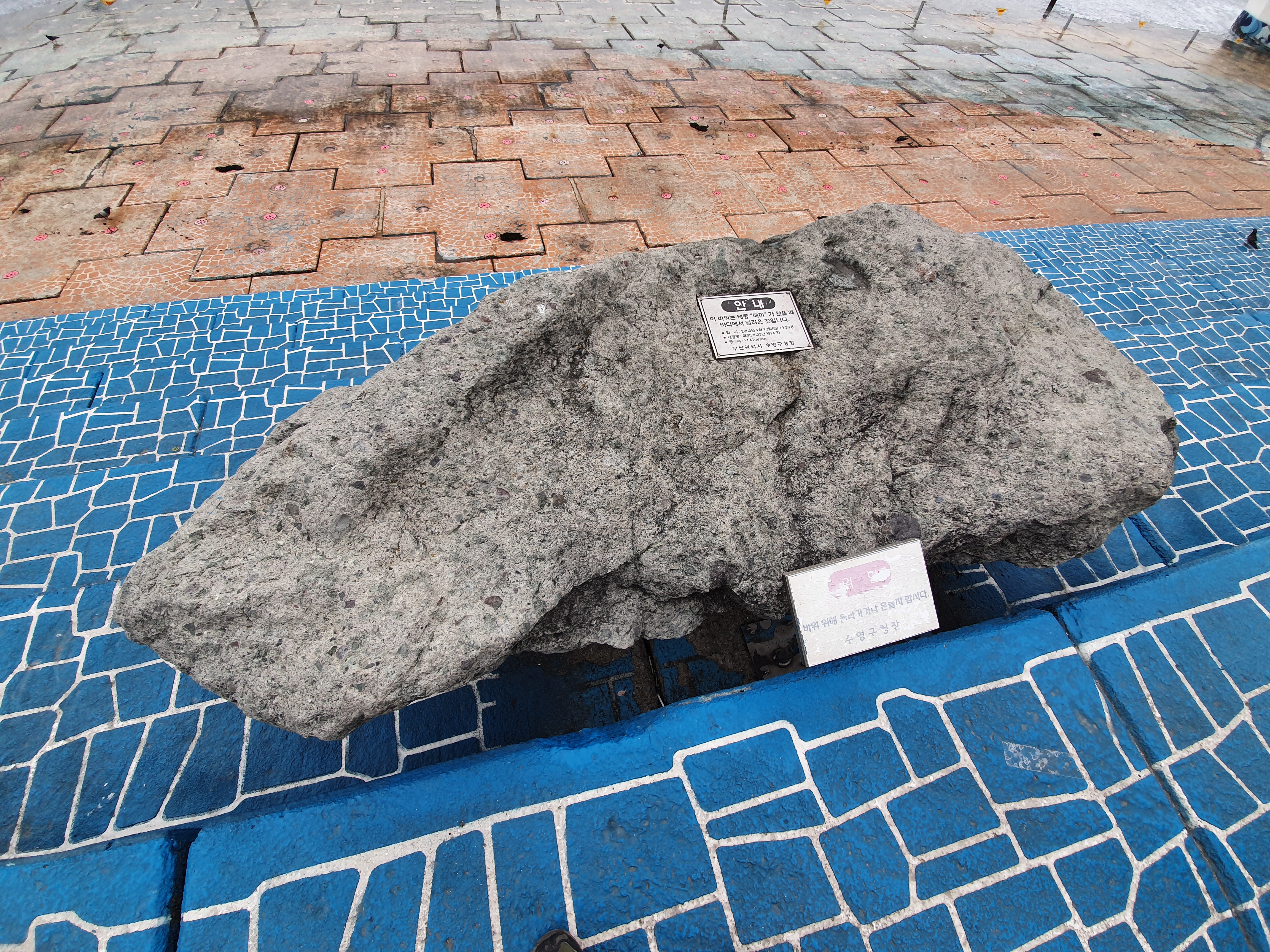 이 돌맹이는 지난 2003년 9월, 태풍 매미가 왔을 때 바다에서 밀려왔다고 하는데, 이 어마무시한 크기를 보면 태풍의 위력을 가히 짐작할 수 있겠습니다. ㄷㄷㄷ;;;