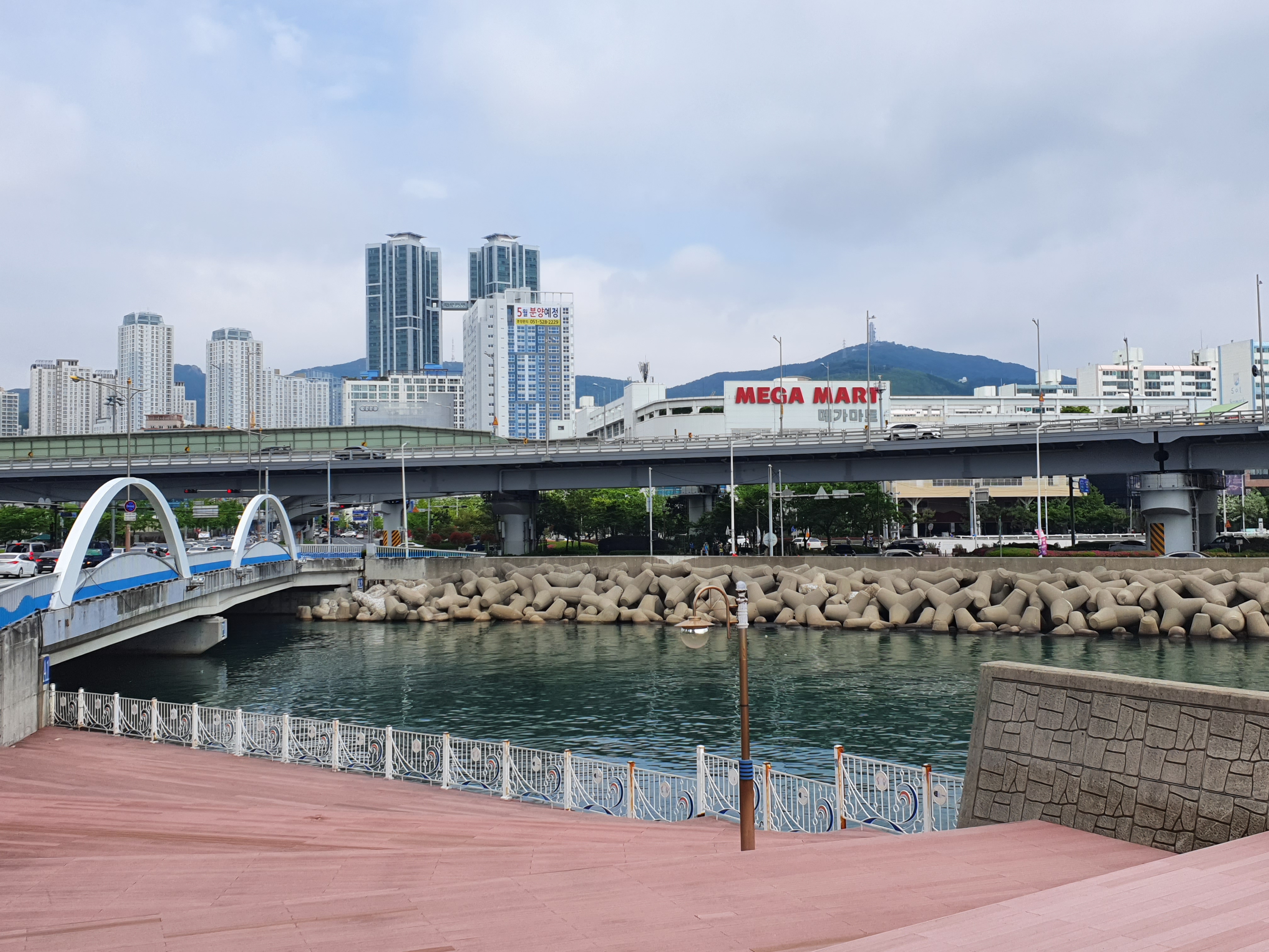 동생말에서 내리막 길을 따라 걸어 내려온 뒤, 용호만 부두 방향으로 발걸음을 옮깁니다. 파도소리가 들리는 자연과 함께 하는 해파랑길 코스는 이제 끝이났고, 시내 탐구가 시작되는군요;;;