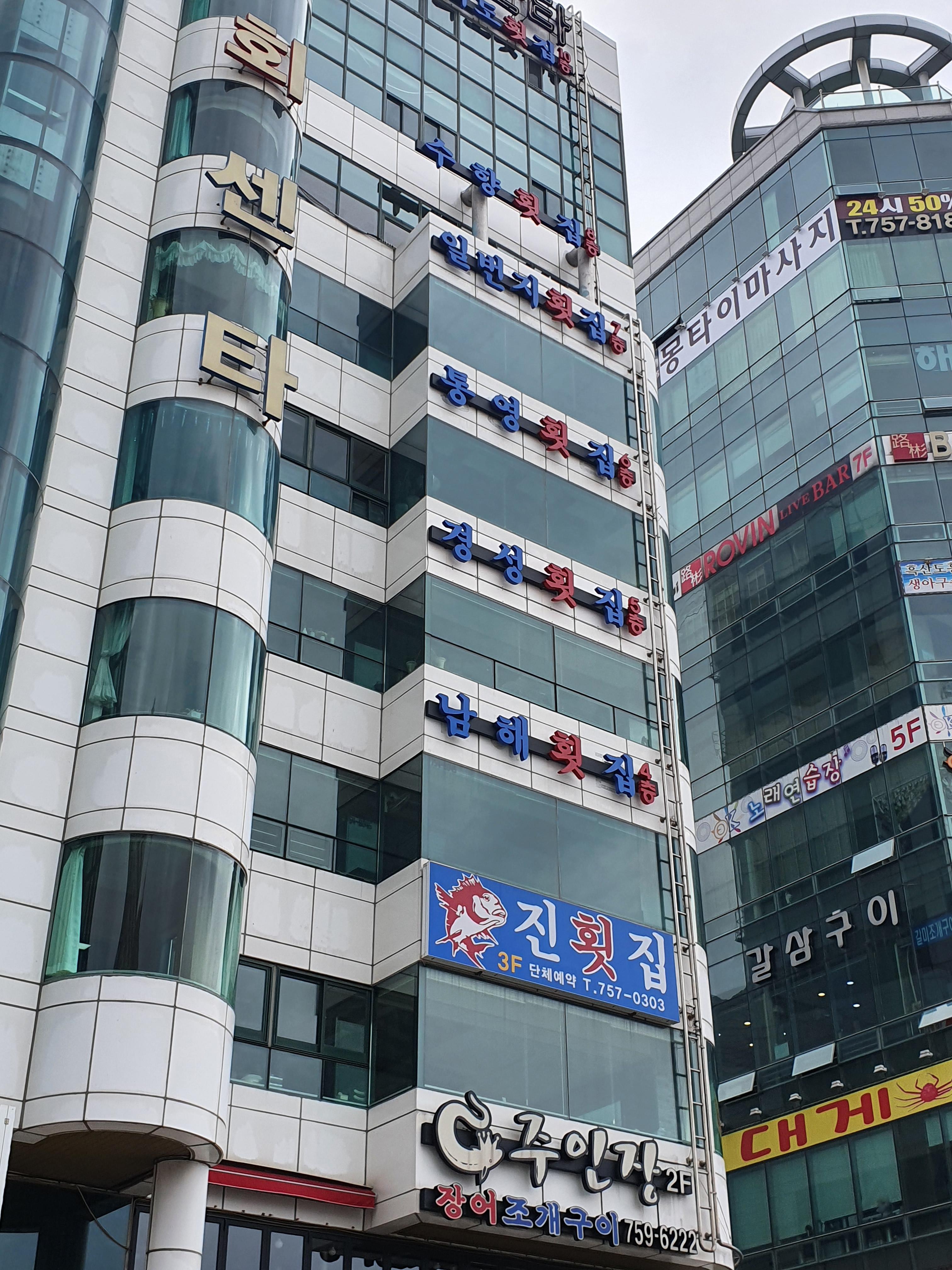 여기도 노래연습장 한 층을 제외하면 모조리 횟 집이군요 ㅠㅜ
