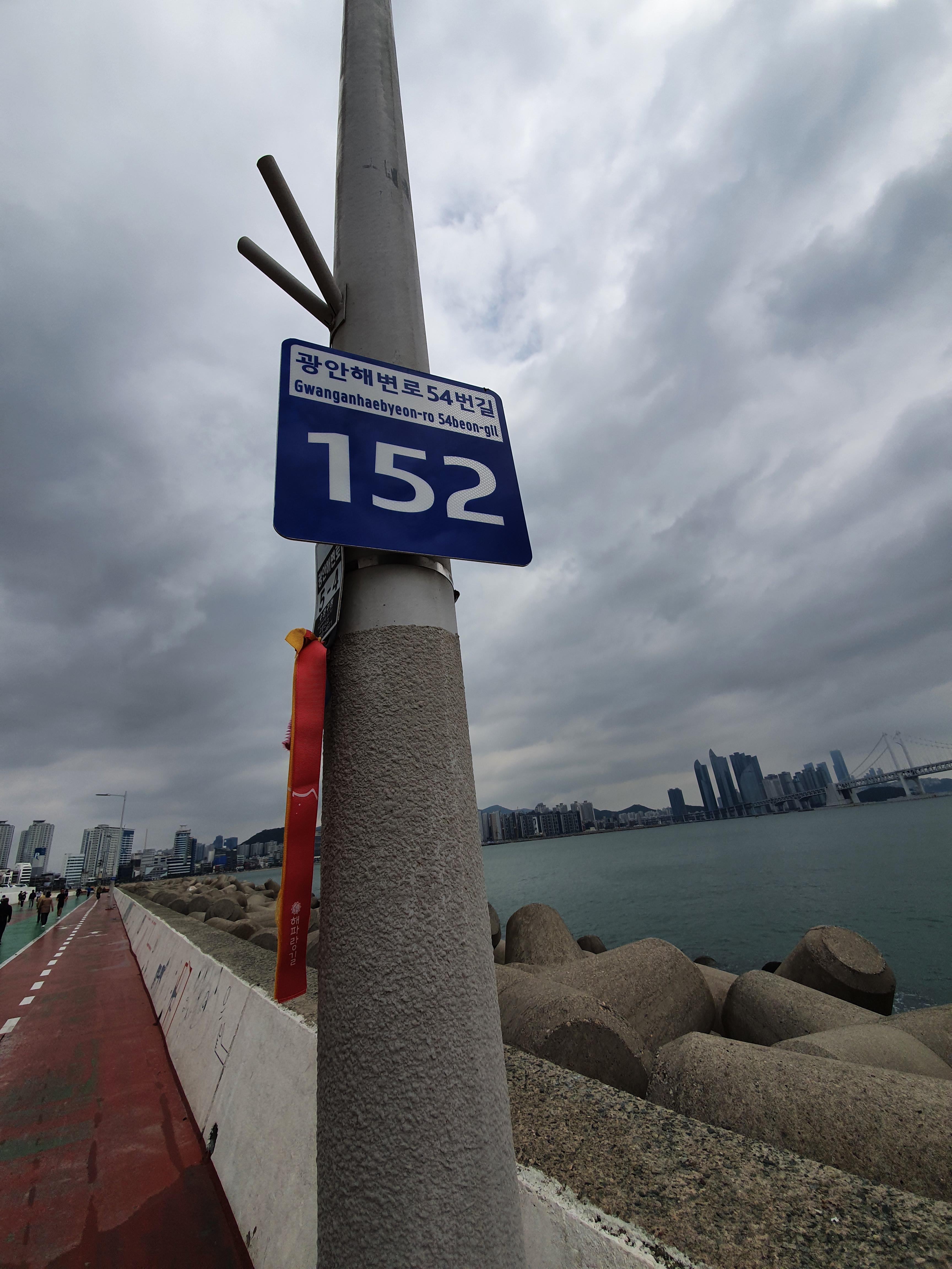 이기대 시작&종료 지점인 동생말에서 계속 길을 이어갑니다. 산길과 해안길은 끝이 났고, 이제 부산 시내로 들어가 평지를 걸으며 용호만을 돌아 광안리 해수욕장을 통과하게 되는 루트를 따르게 되는 것이죠.