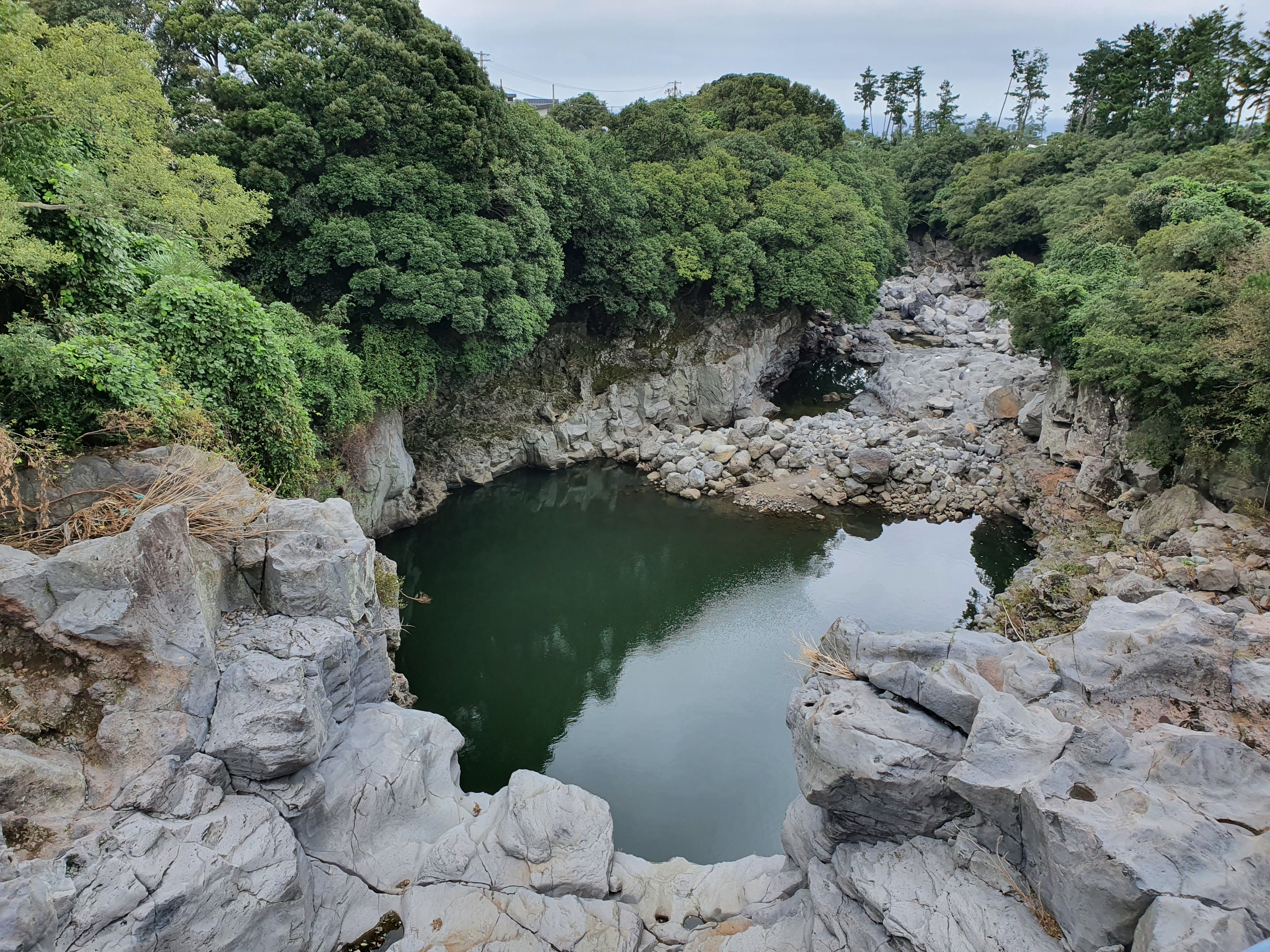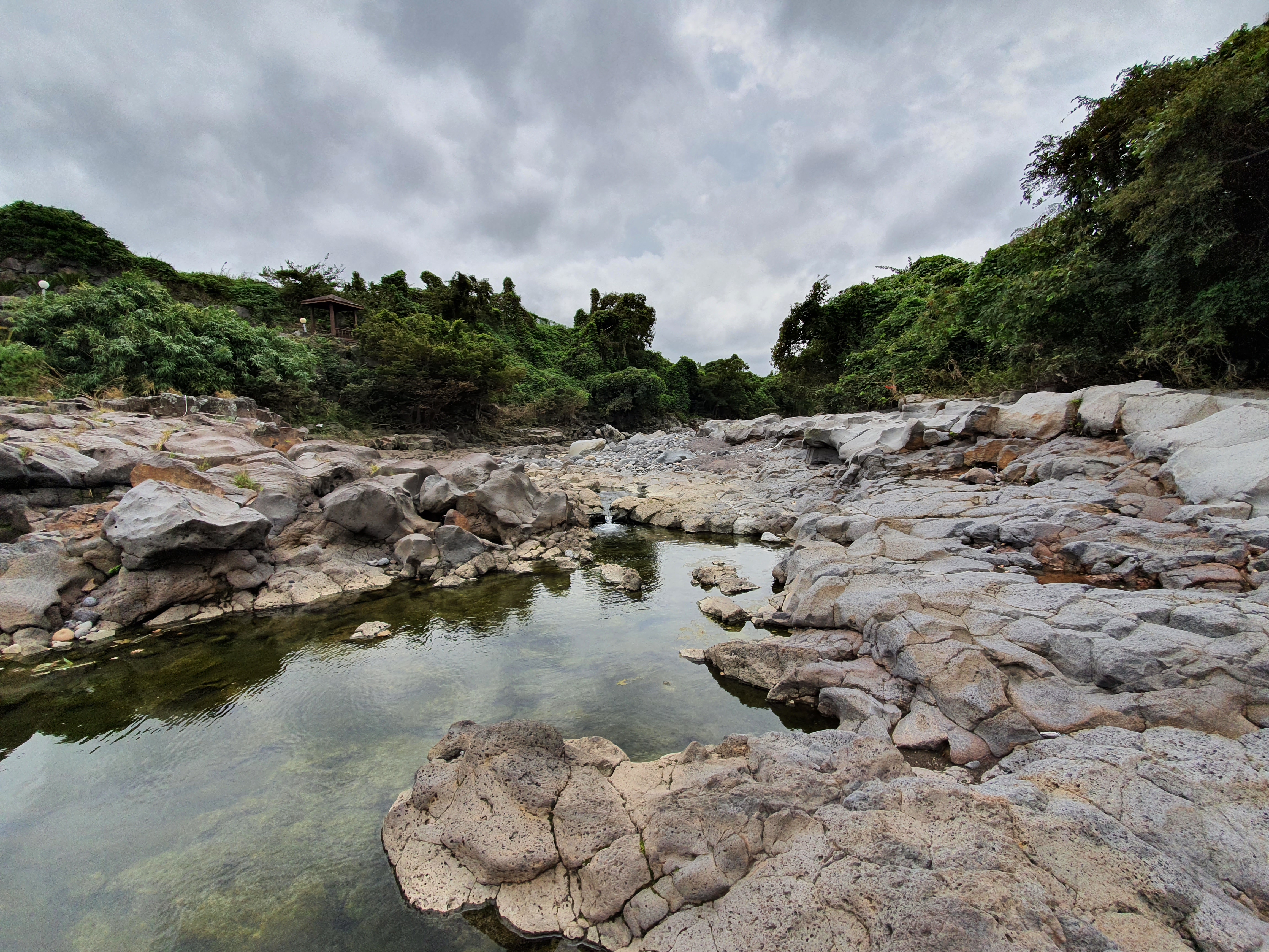 길게 이어져 있는 무수천은 구멍이 숑숑 뚫려 있는 것이 현무암의 특성을 잘 보여줍니다. 흐르는 물이 너무나도 투명하고 맑습니다.