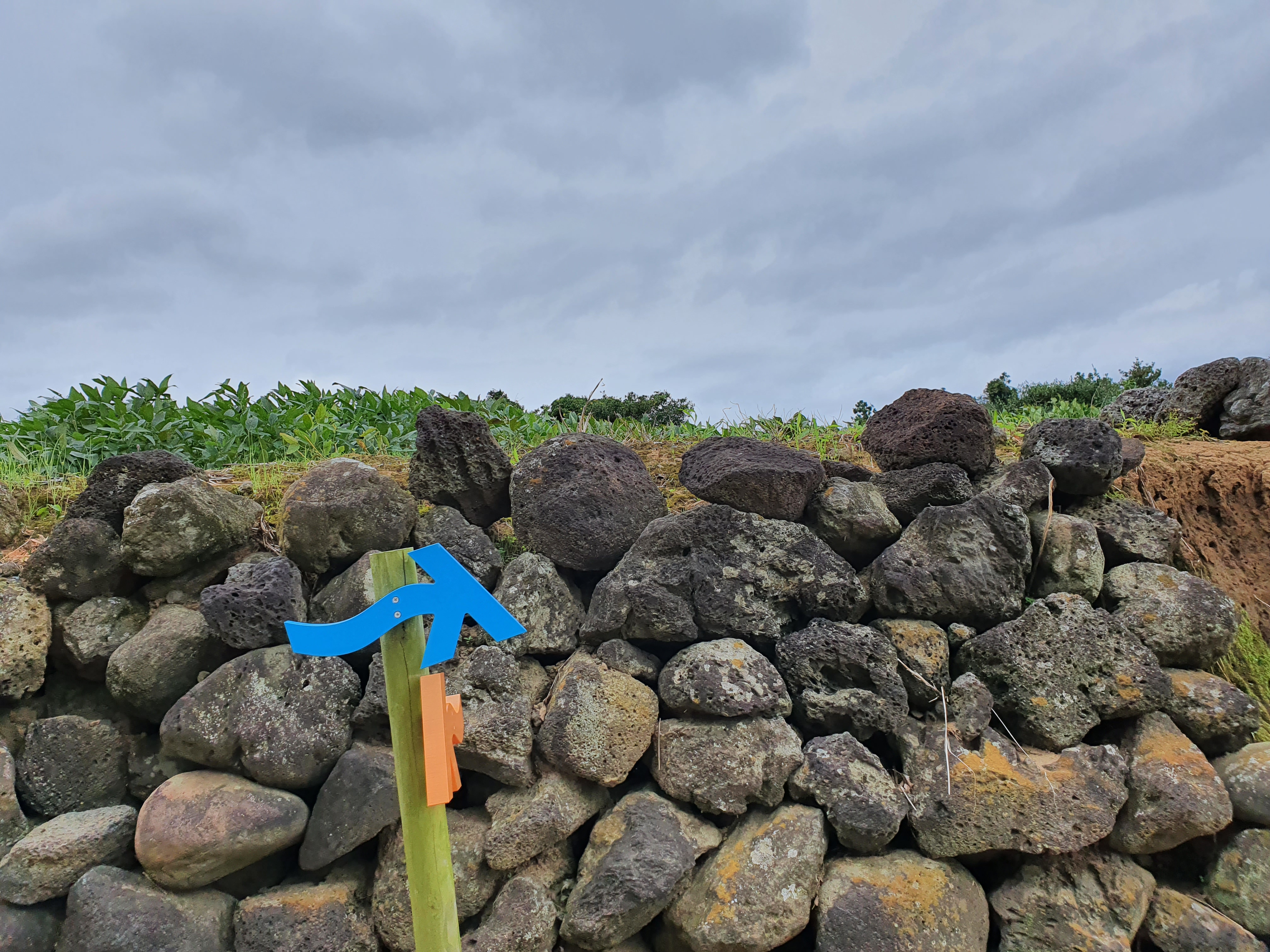 올레길마다 볼 수 있는 표지판이 촘촘히 설치되어 있어, 길을 잃기가 오히려 쉽지 않을 것 같습니다. 누구나 알고 있는 바와 같이 파란색은 정방향, 오렌지색은 역방향 이동 경로를 표시합니다.