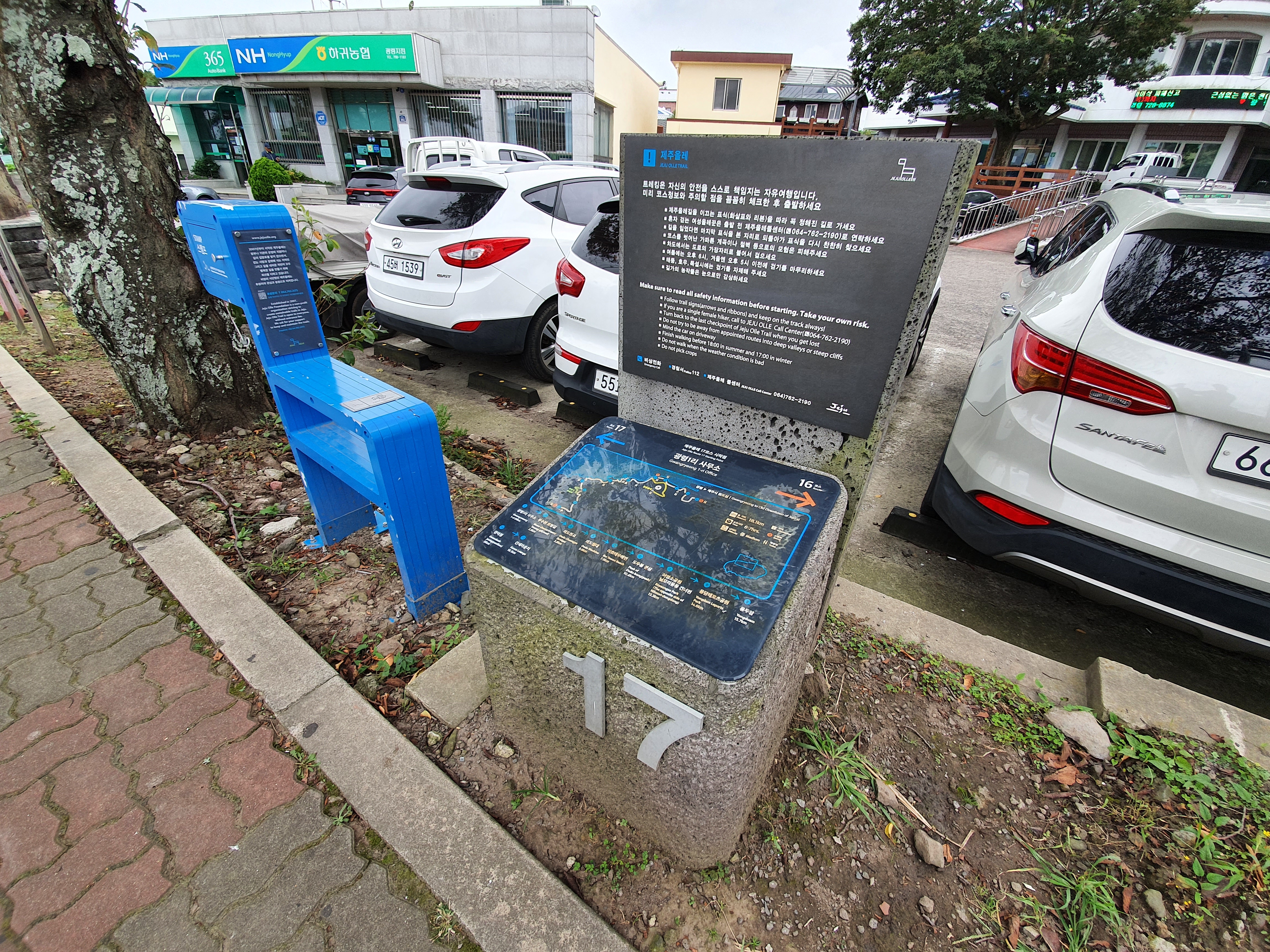 길을 건너 광령1리ㅣ 사무소 앞 올레길 17코스 출발지점에서 간단히 이동경로를 살펴 봅니다.