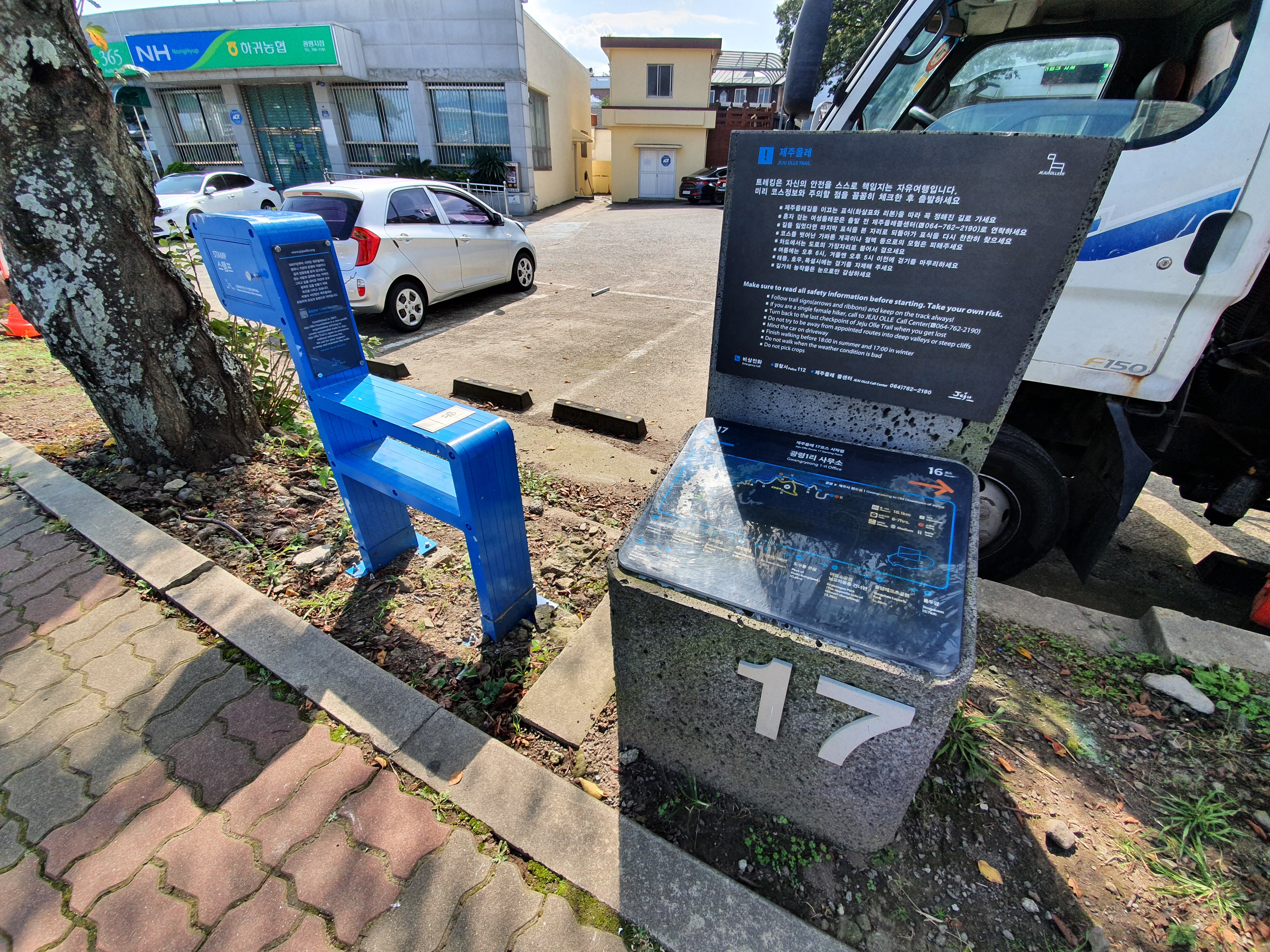 또다시 광령1리 사무소 앞입니다. 지난번에 이 곳에서 출발하여 17코스를 마무리 한 바 있는데, 오늘은 여기서 16코스를 역방향으로 거슬러 가 보겠습니다.