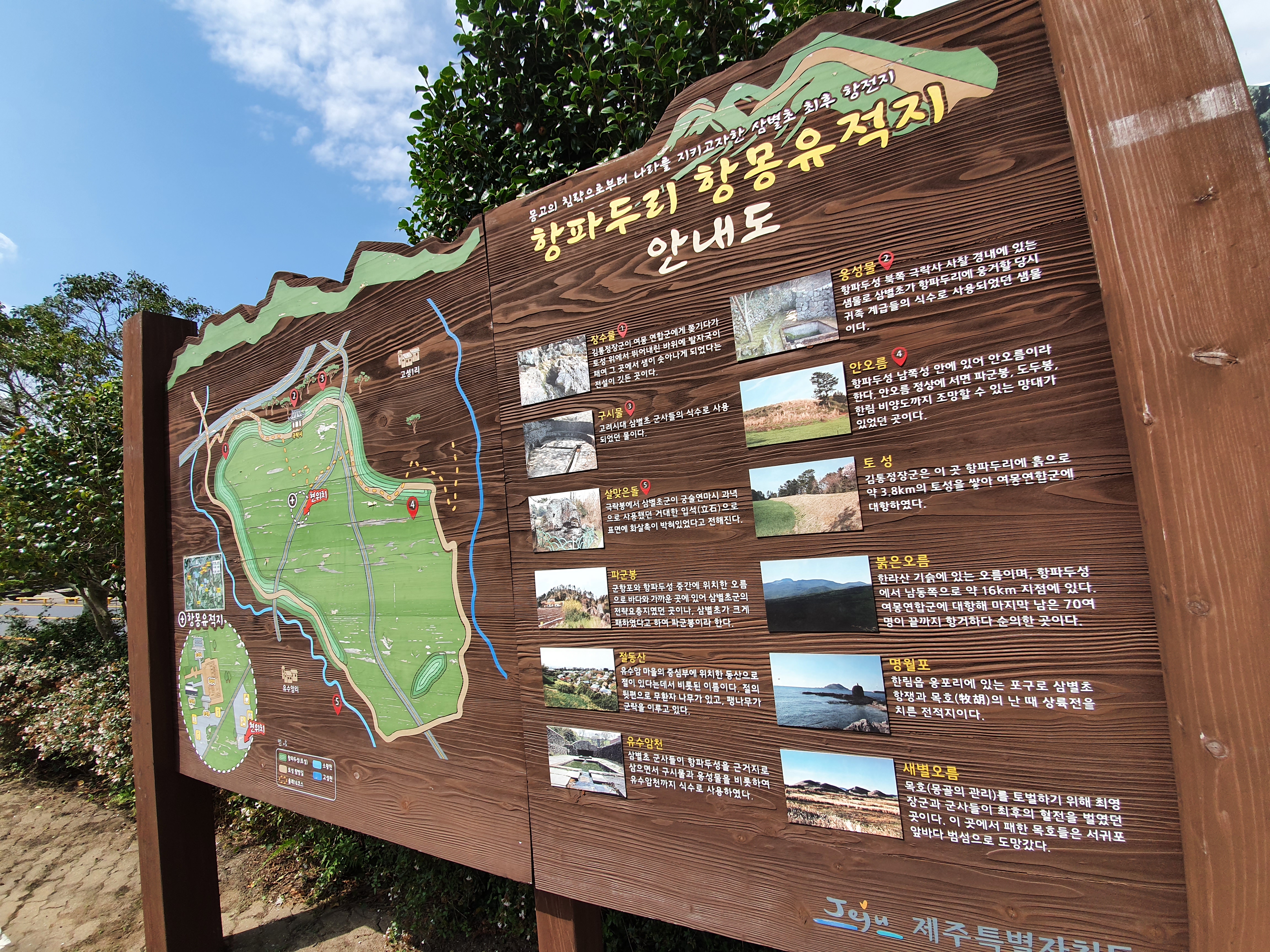 항파두리 항몽유적지. 고려시대 "삼별초"까지 거슬러 올라갑니다. 몽골에 대응하기 위해 삼별초는 강화도, 진도, 제주도로 옮겨가며 항쟁했었는데, 그 때 이 곳 제주에서 전투를 한 곳이 여기 항파두리 항몽유적지라고 합니다.