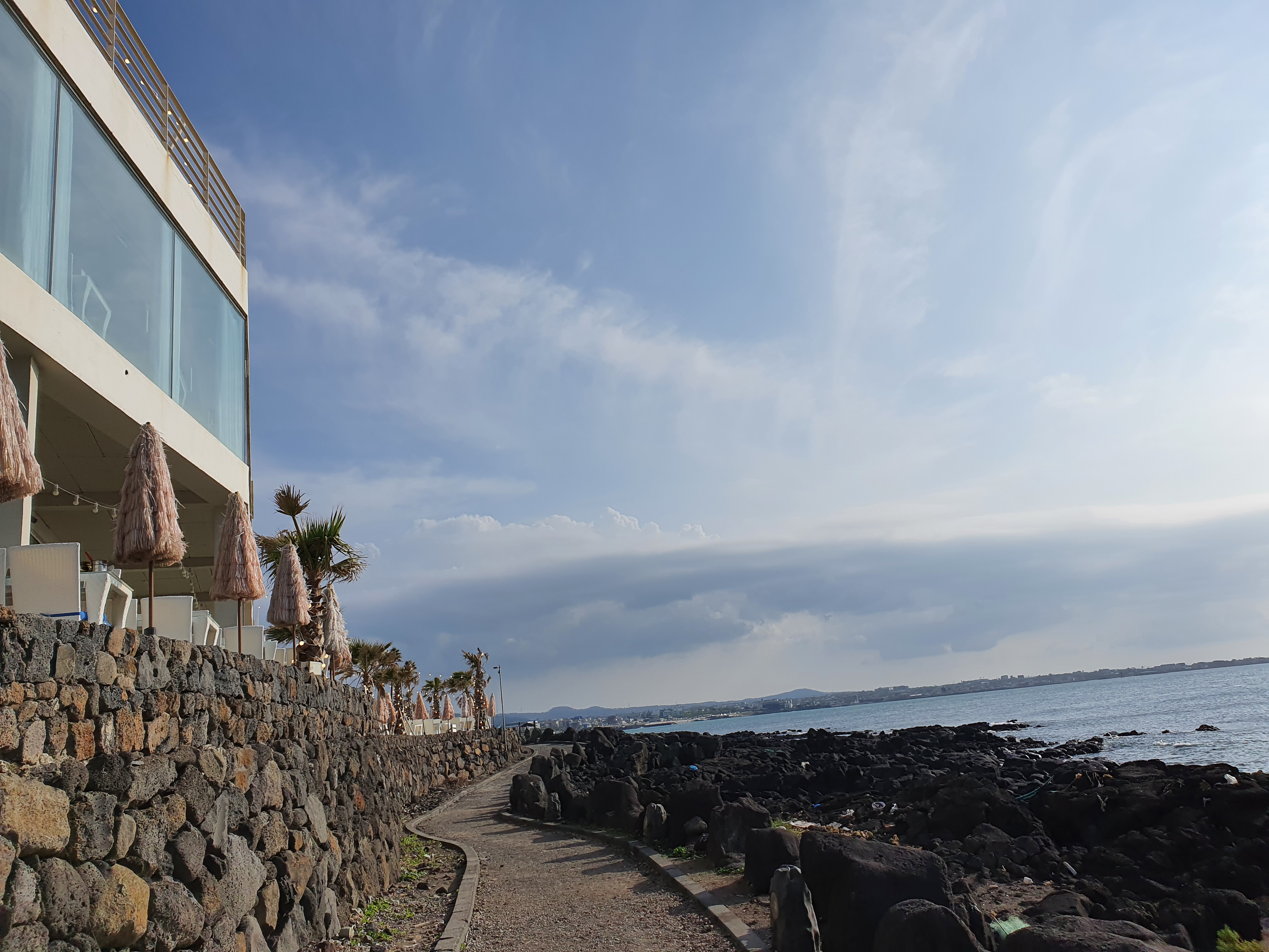 물론, 이러한 전망값이 같이 포함되었기 때문이겠죠. 카페가 예쁘기 보다는, 이 곳에서 보는 한담해변의 뷰가 예쁜 침대형 소파에서 여유를 가져보고 싶지만, 저는 올레길 여행자이므로 신속히 자리를 뜹니다.