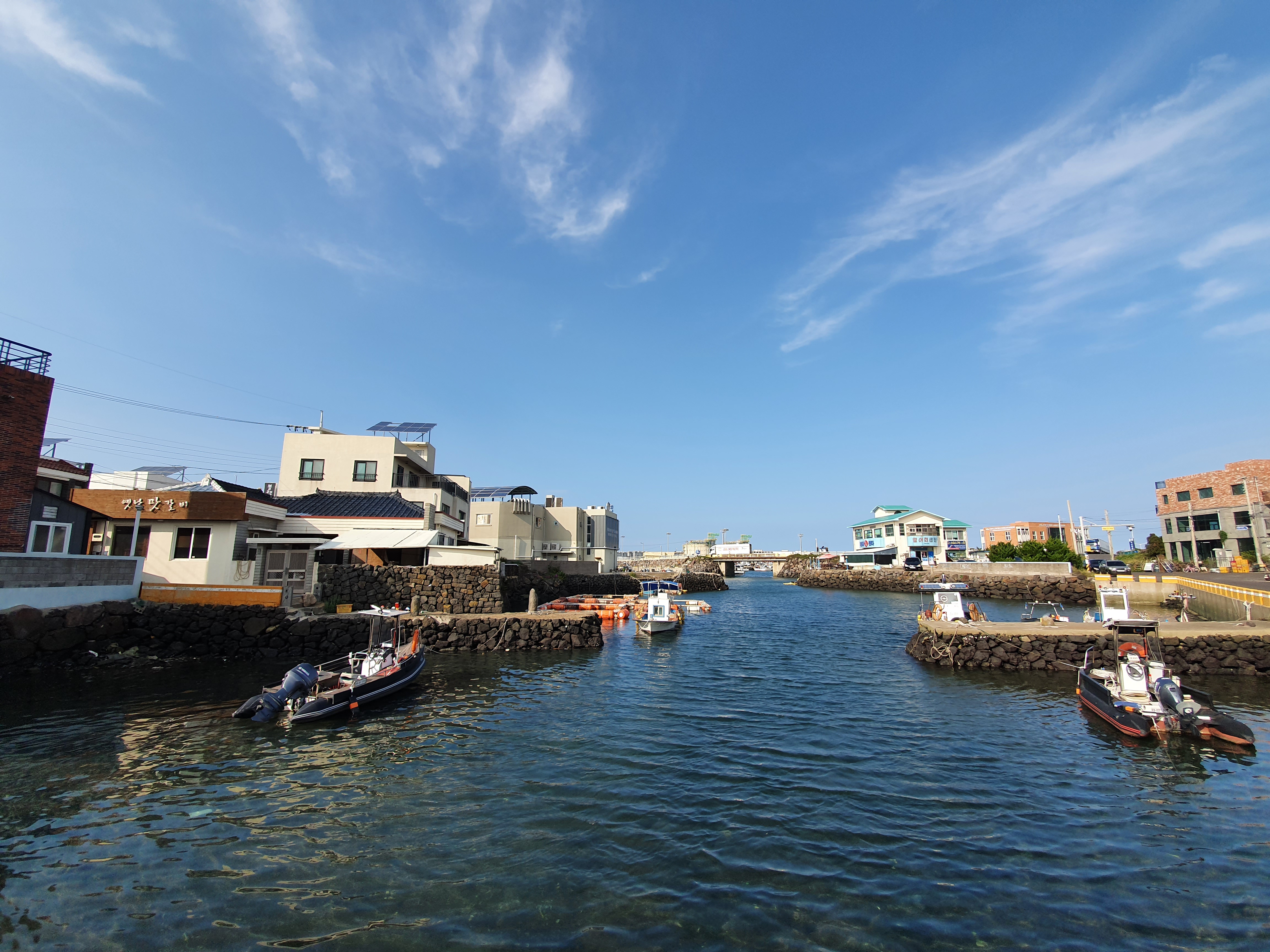 전형적인 제주 포구는 마을을 뒤의 배경으로 해서 자리잡고, 그 주위에 등대, 소금밭, 연대가 위치하고 있습니다. 포구 앞에는 거센 바람과 파도를 막은 여나 코지 등 자연지형이 위치하는 것도 특징입니다.