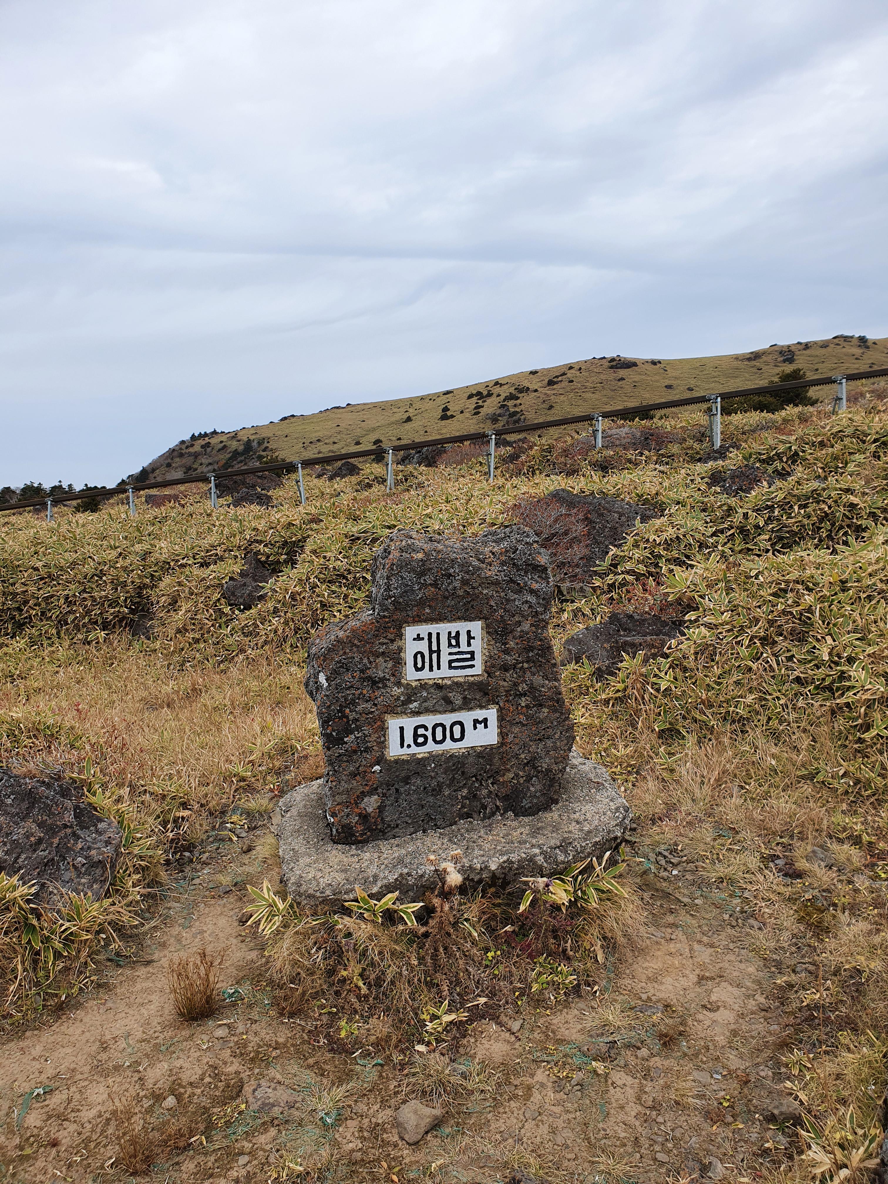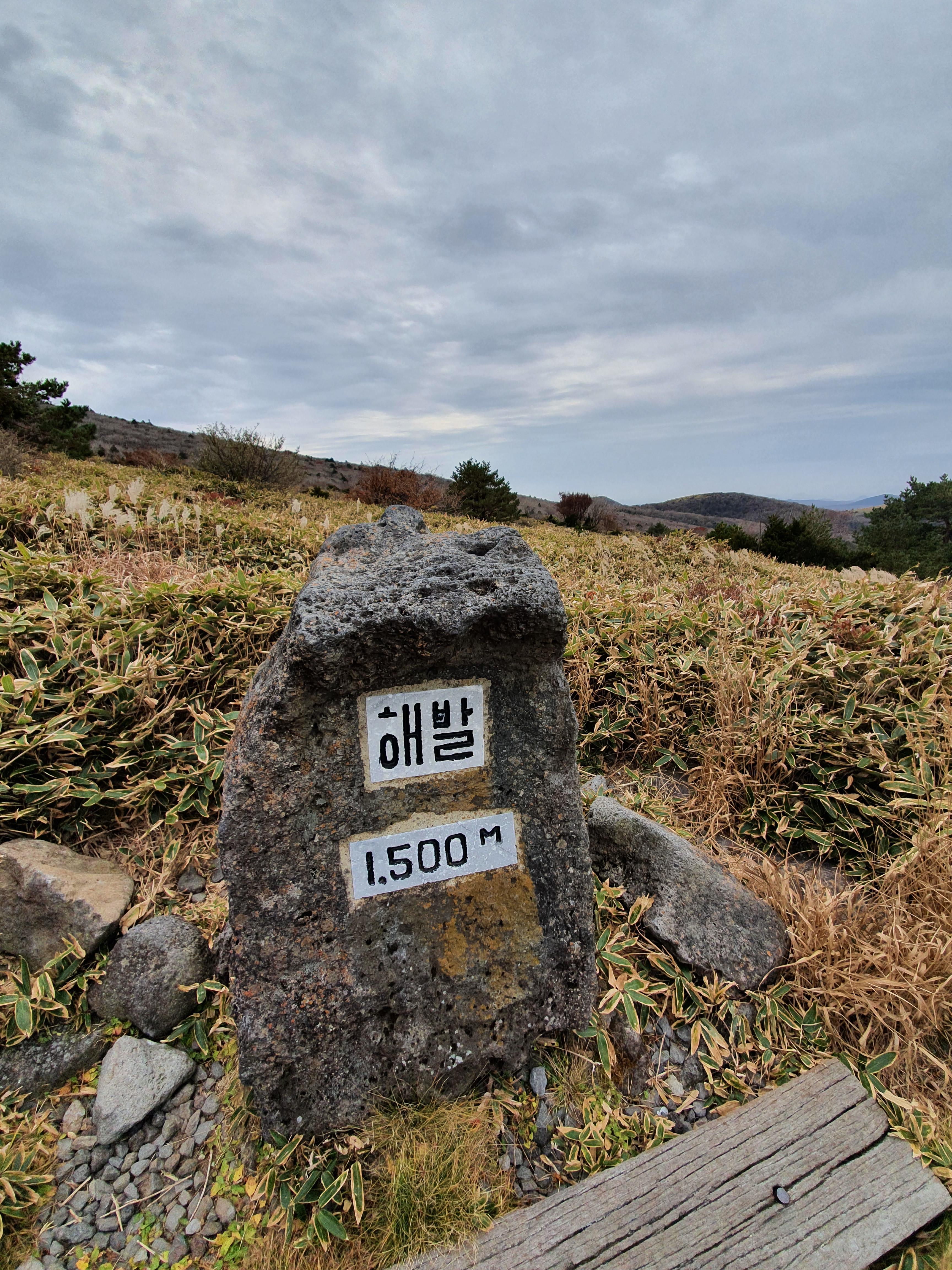 한라산을 등반하면 늘상 보는 해발 고도표지석입니다. 일반적 산행에서 볼 수 있는 높이에 앞에 "1"이 하나 더 붙어 있으니 1,500m 정도는 우습게 보이지만, 소백산 정상 비로봉이 1,439m 인 것을 감안하면 굉장히 높은 고도죠.