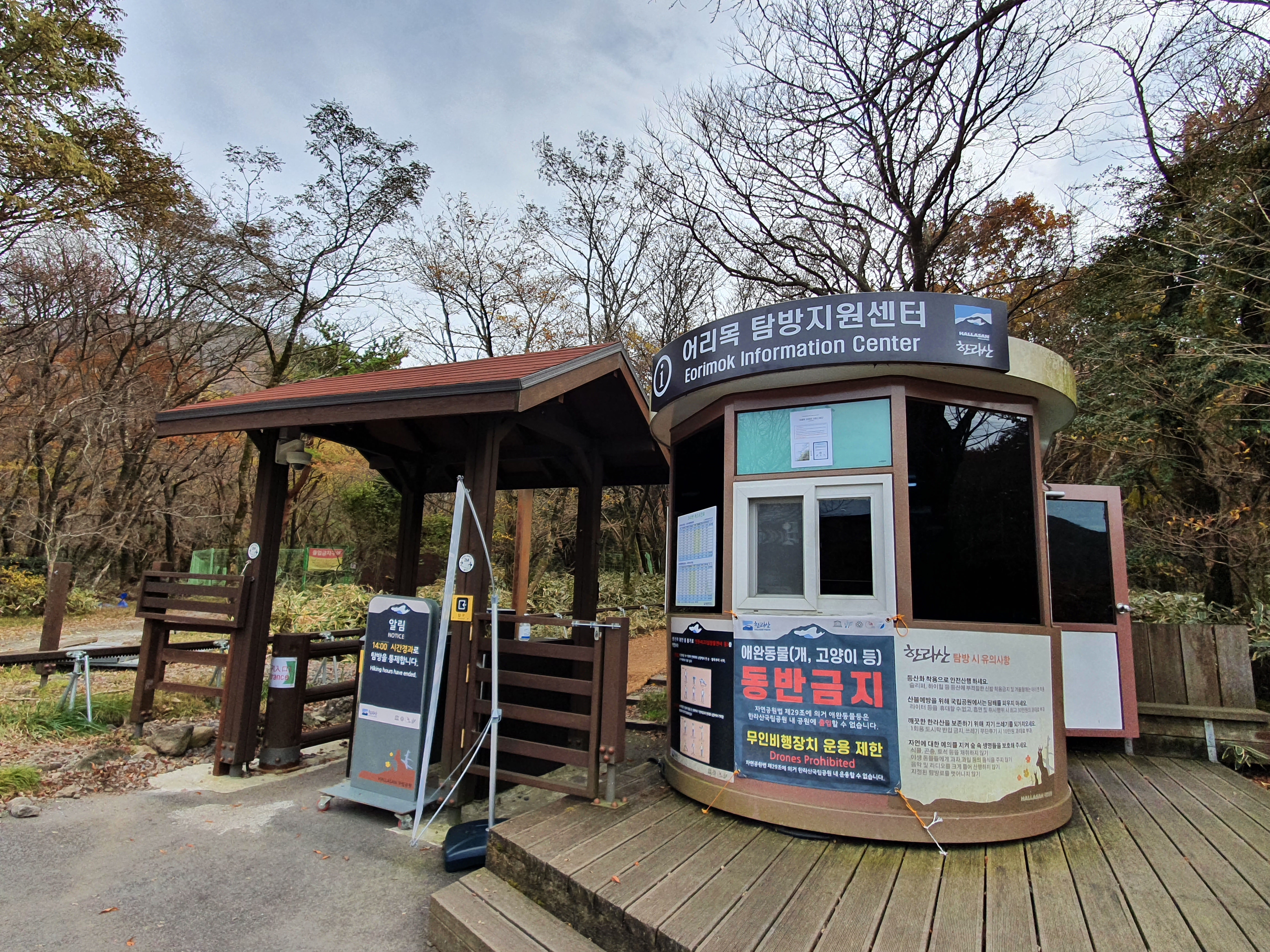 드디어 어리목 탐방센터 출구에 도착입니다. 하산길은 계속 내리막이다보니 큰 어려움 없이 쉬웠던 것 같네요.
