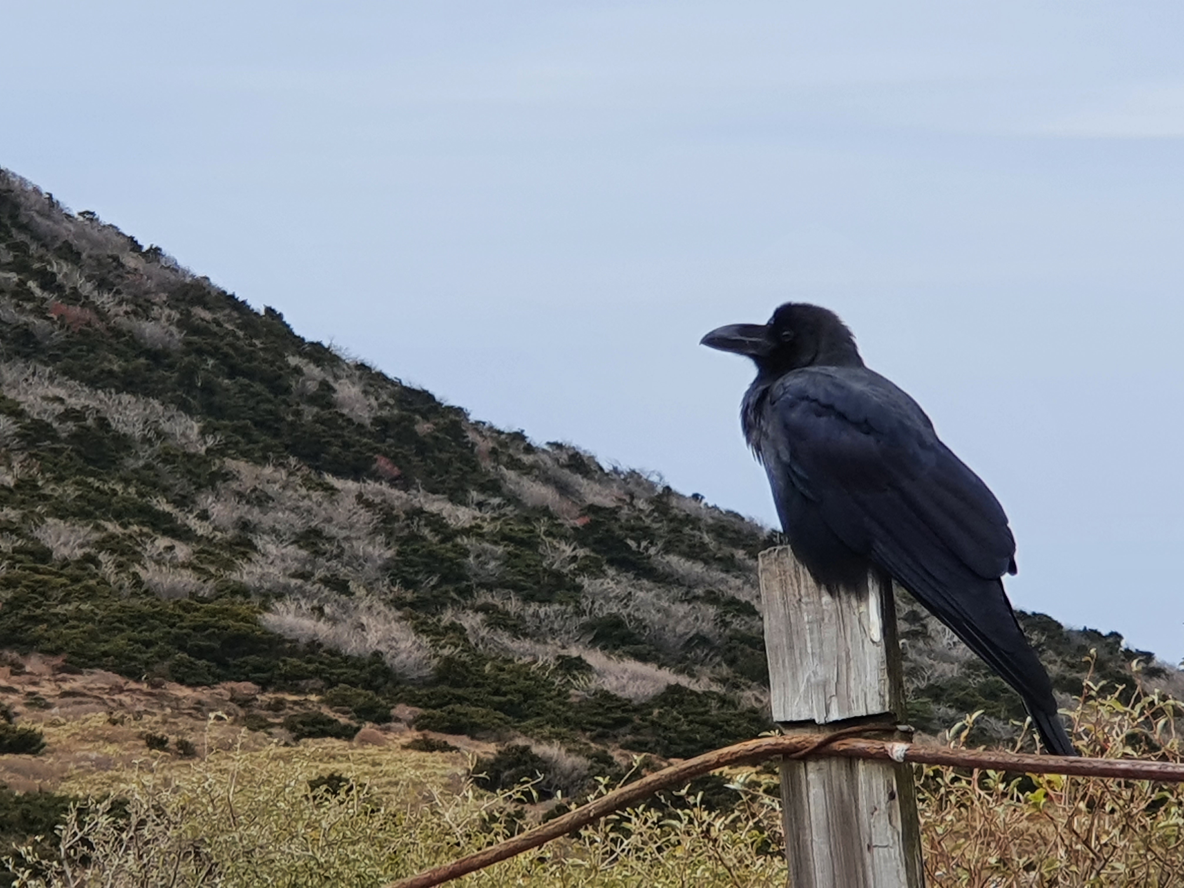 앞에서도 잠깐 언급했었지만, 이건 까마귀인가 독수리인가? 사람을 봐도 도망가지 않고, 오히려 집단적으로 위협하는 분위기까지 드는 무시무시한 한라산 까마귀입니다.