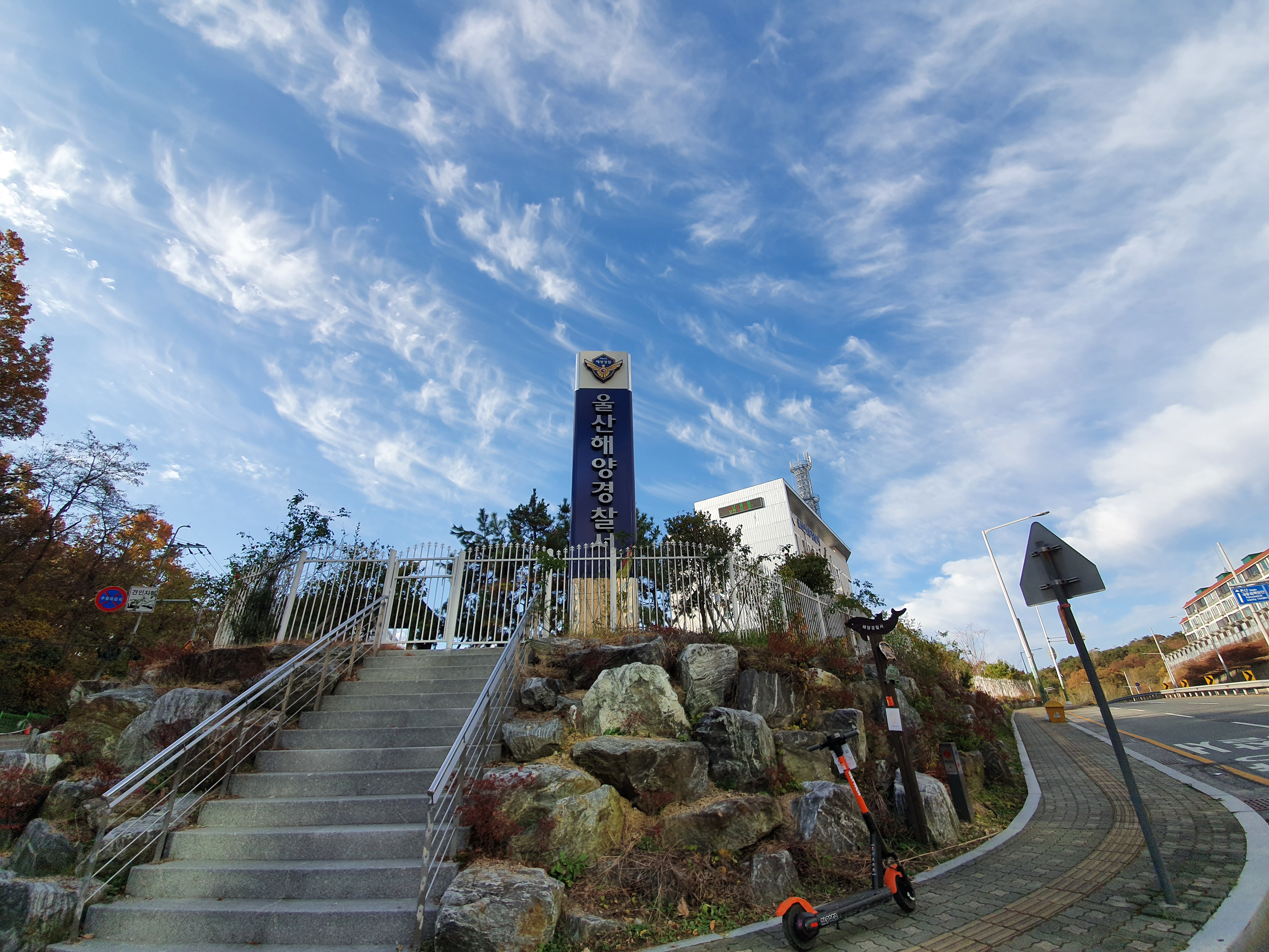 울산 해양경찰서 오른쪽 인도를 따라 진행하면 금방 내리막길이 나옵니다.