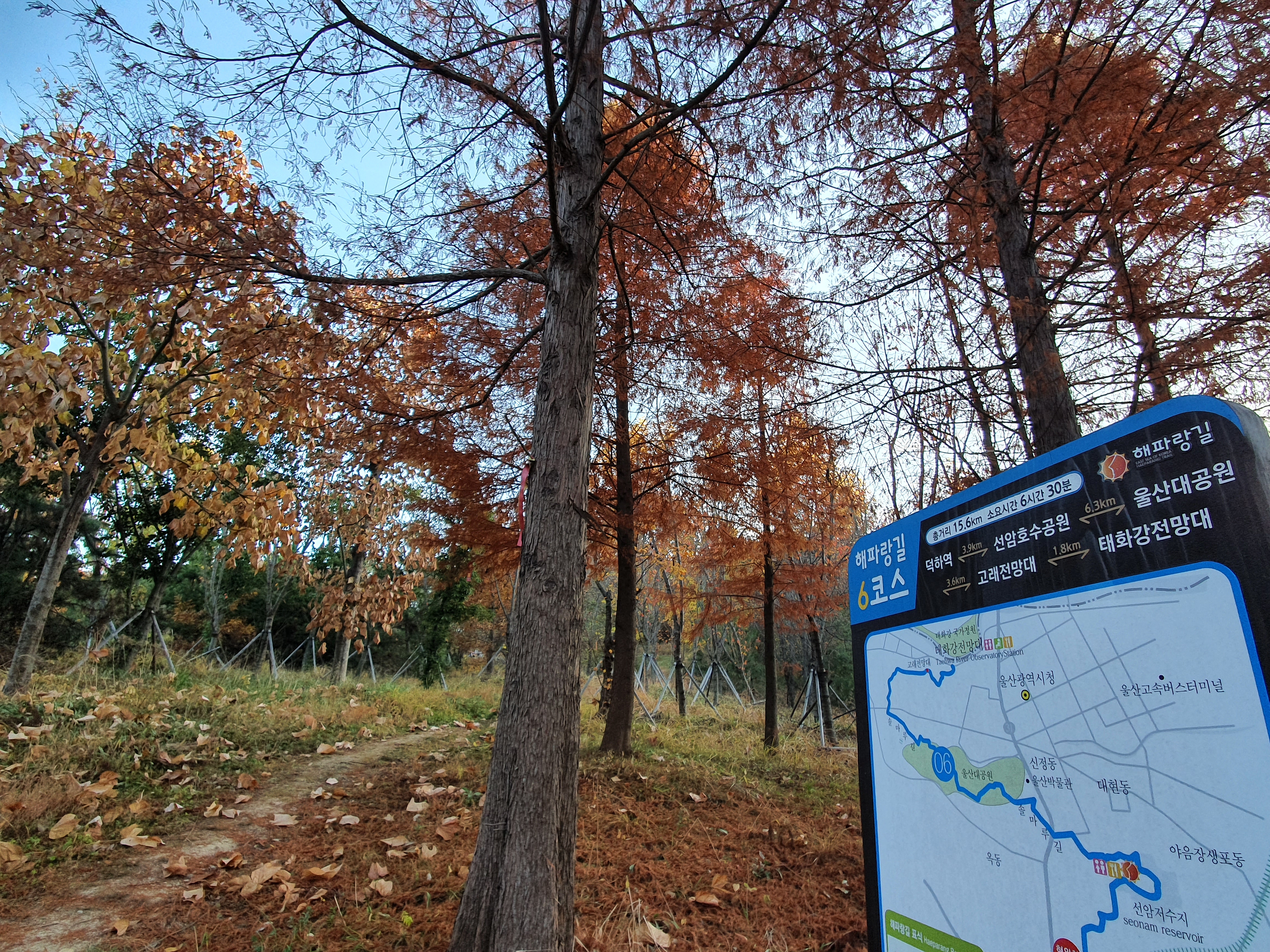 이어지는 해파랑길 6코스 트레킹 기록입니다. 덕하역을 출발하여 선암호수공원을 거쳐 솔마루길을 걸어서 울산대공원을 통과한 뒤, 마지막 태화강 전망대까지 이어집니다.