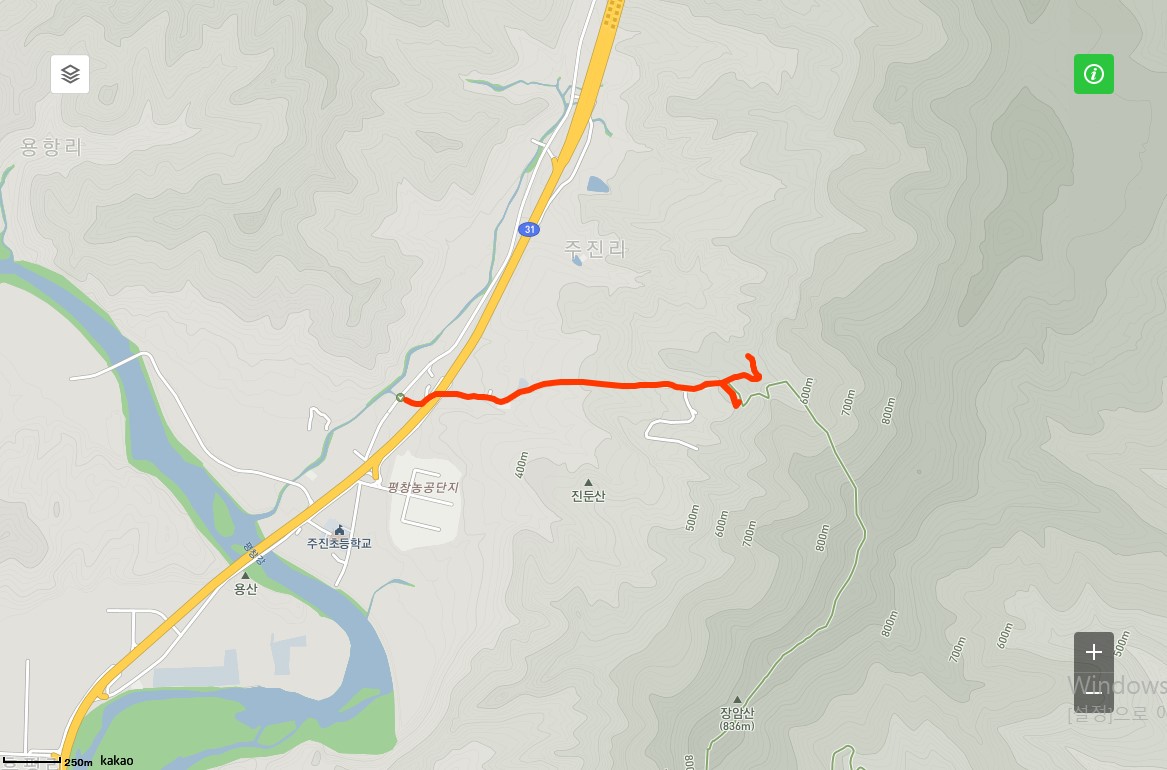 - 평창 버스터미널정류장에서 버스(장평, 평창-가평) 승차 후, 주진정류장 하차, 도보로 이동하면 됨