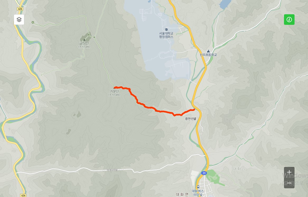 1) a코스 : 고대동교에서 시작하여 거문산 재재고개까지 이어지는 8.4km의 걷기 길