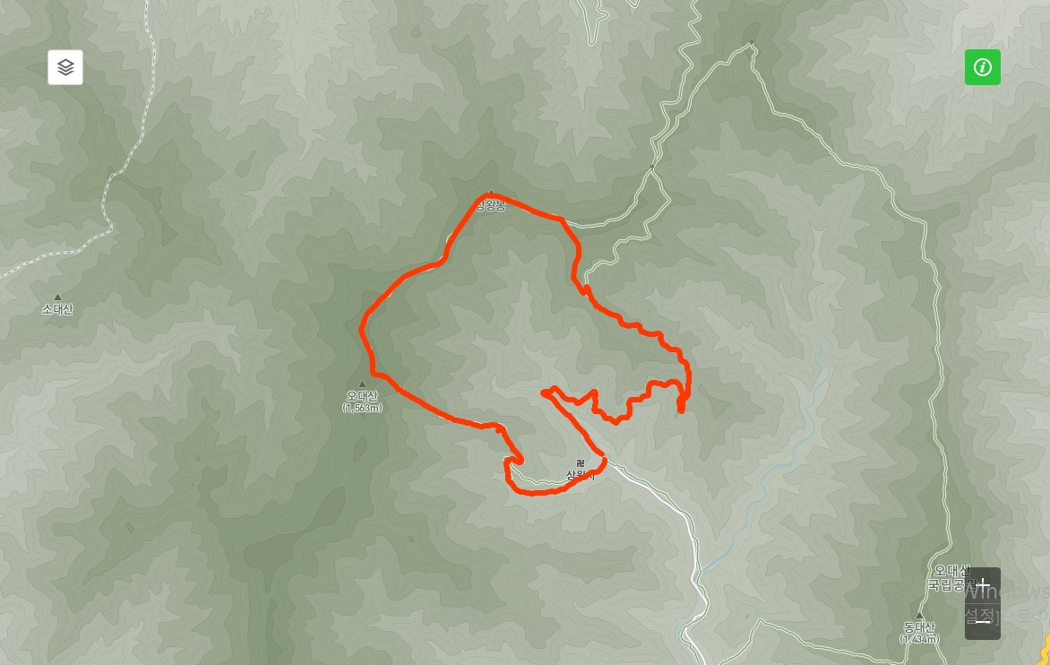 ▶a코스 (9.4km, 약 5시간) : 관대걸이·상원사 - (1.5)월정사적멸보궁 - (1.6)비로봉 - (2.3)상왕봉 - (1)북대사 - (3)관대거리