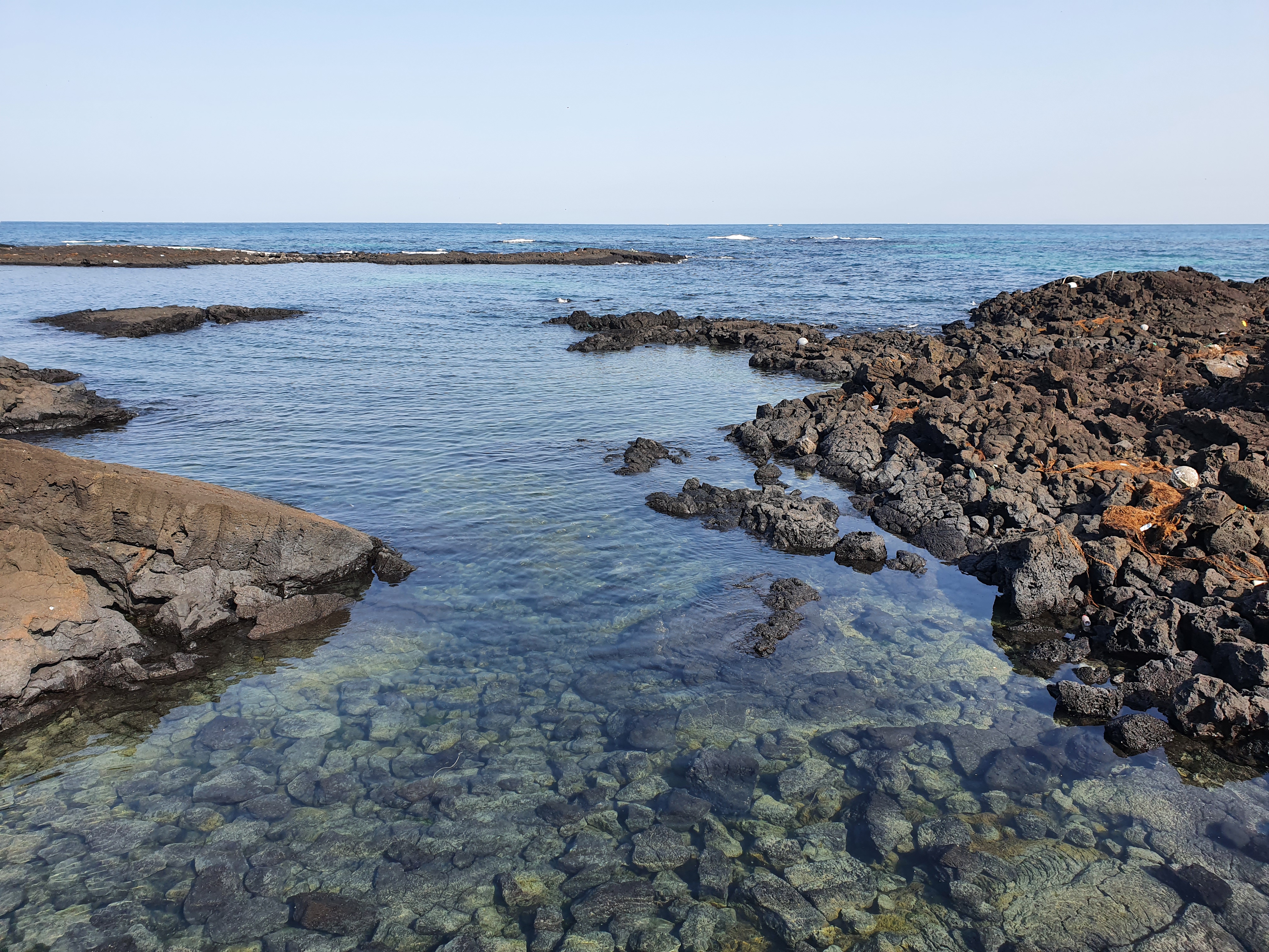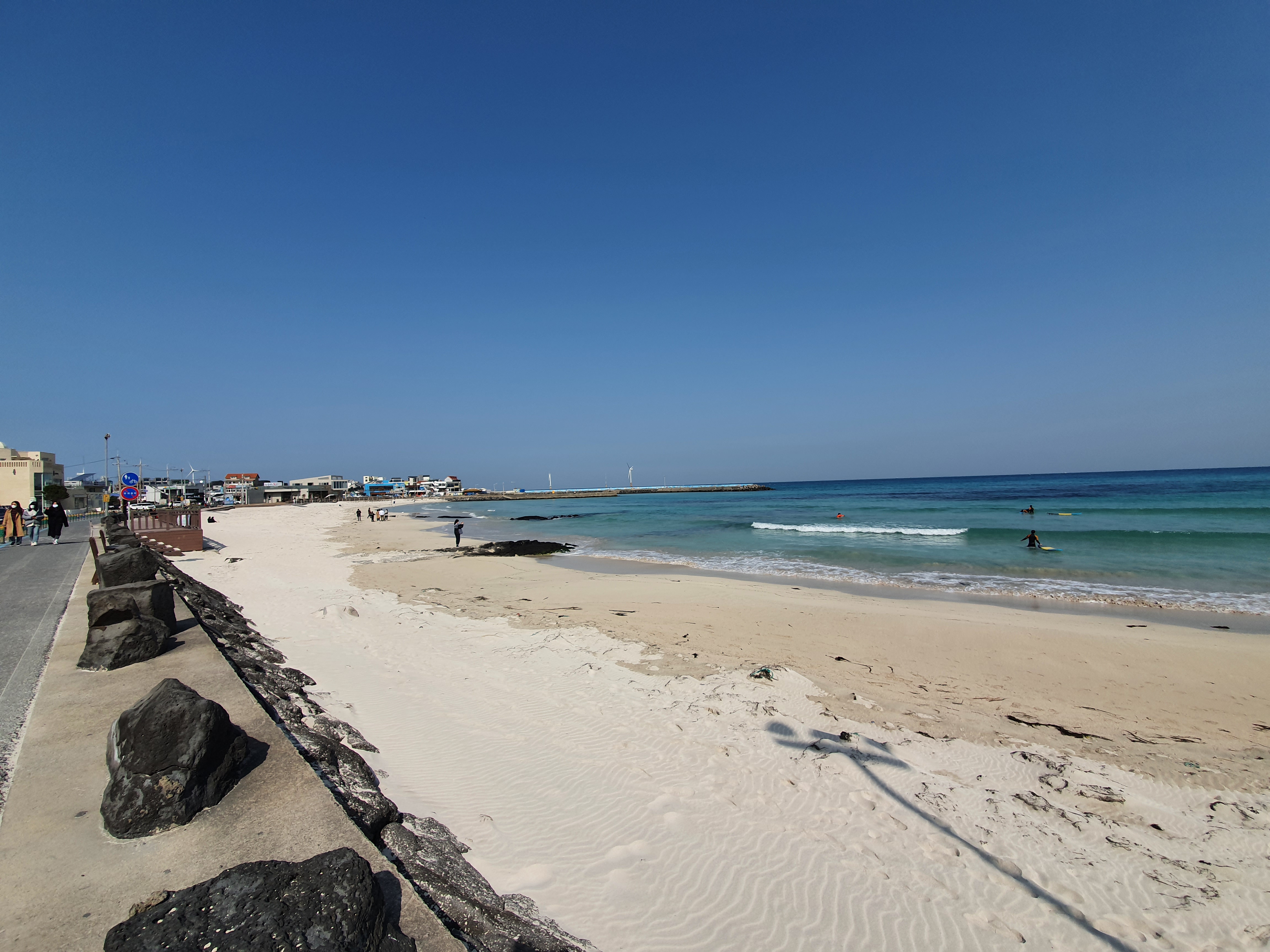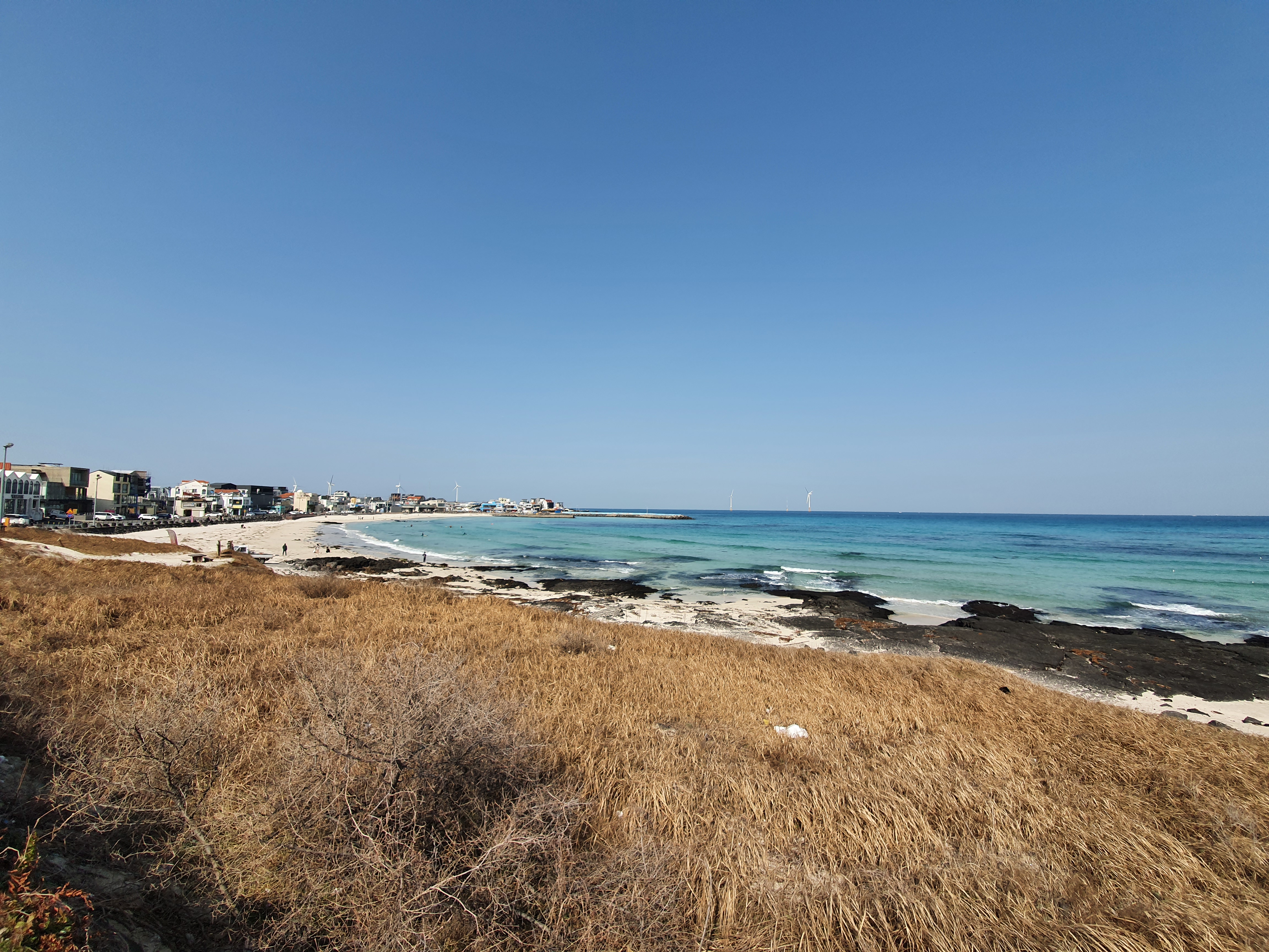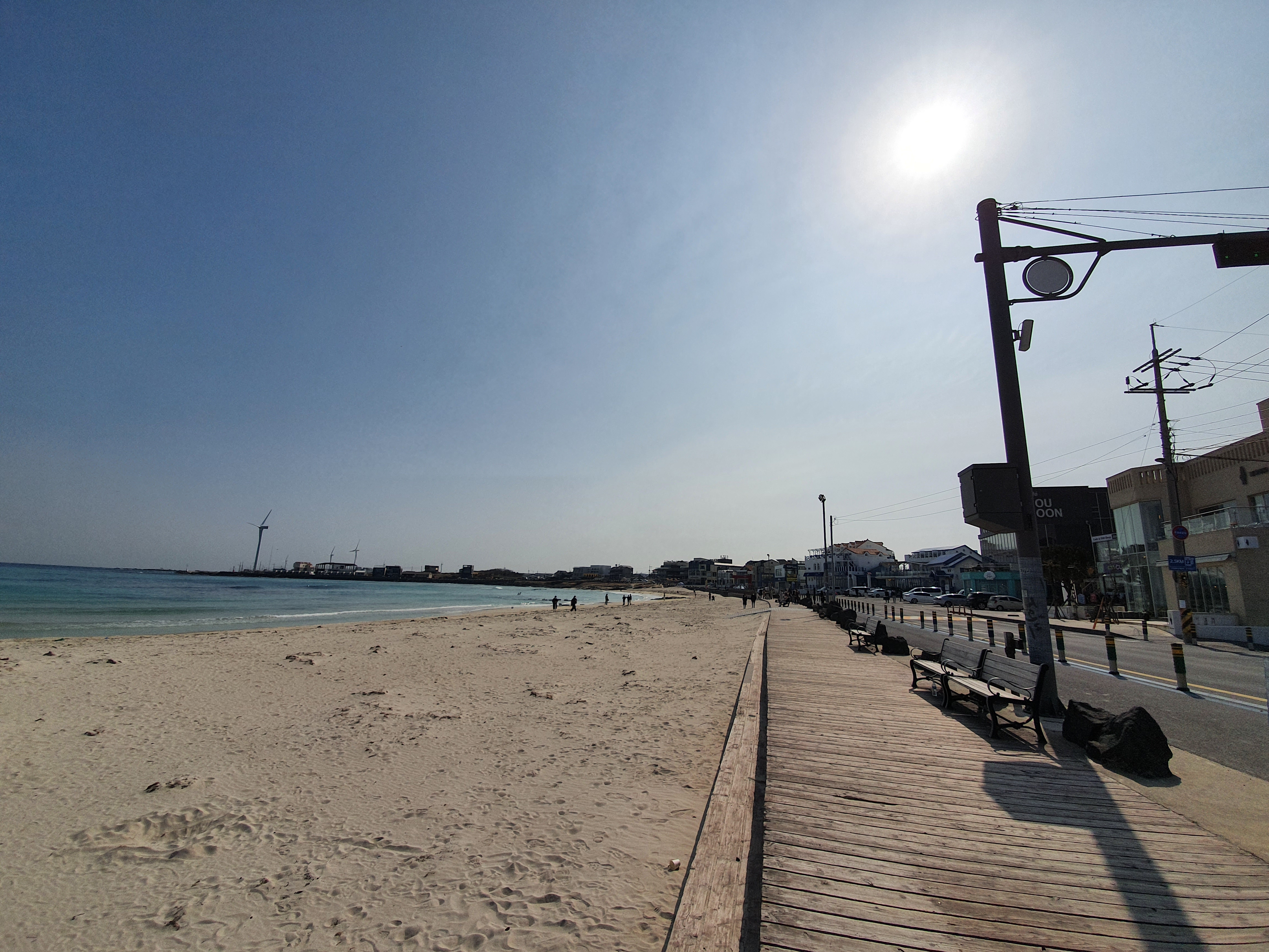 월정리 해변에 도착했습니다. 여기까지 걸어오는 길이 차도와 붙어 있어 조금 위험하게 느껴지긴 하는데, 도로변이 넓어 조금만 신경쓰면 크게 문제는 없습니다.