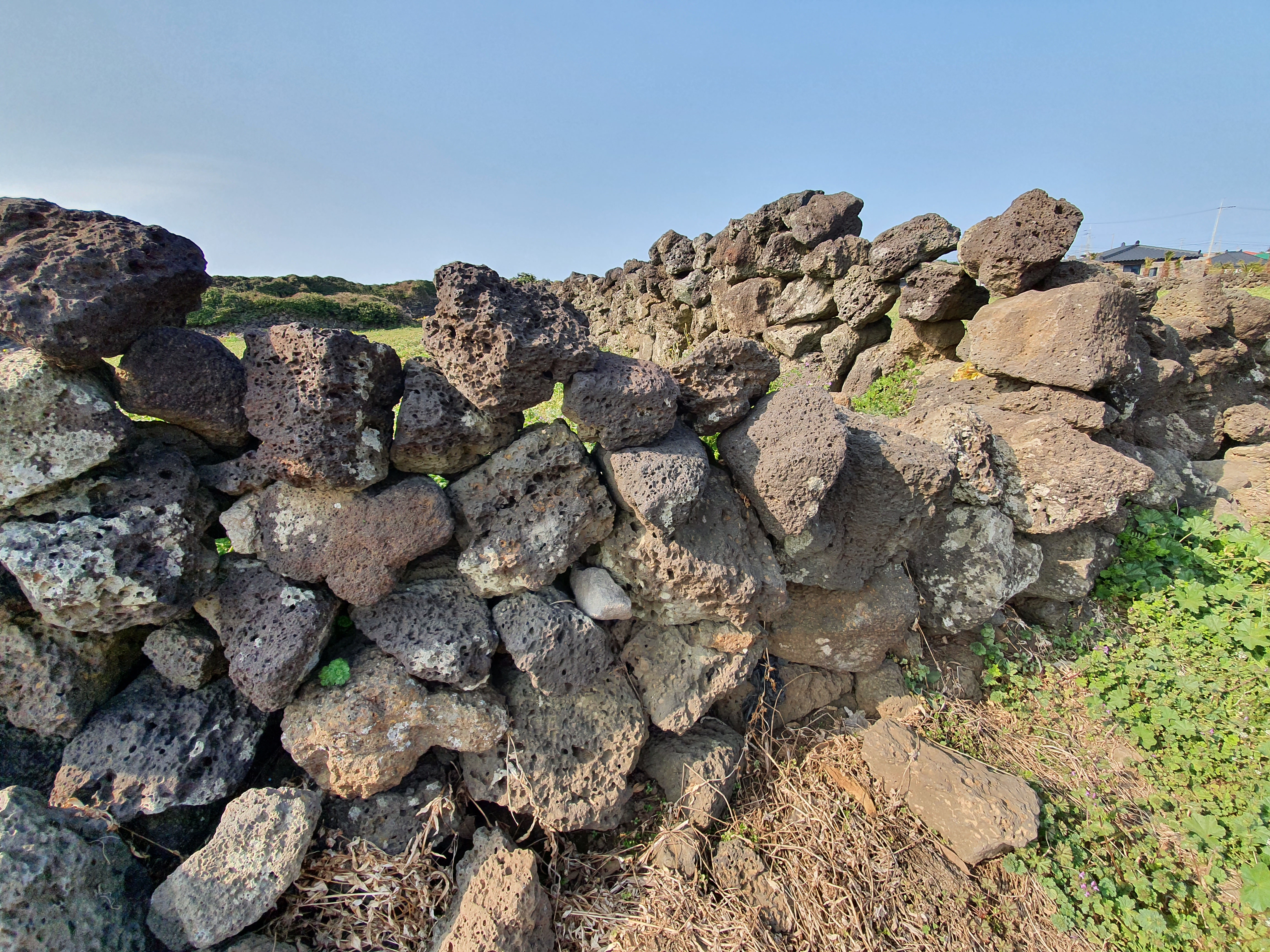 이렇듯이 엉성하게 대충쌓아놓은 밭담은 쉽게 무너질 것 같지만, 그렇게 거센 바람에도 끄떡없이 버텨내는 강인함이 놀라울 따름입니다. 그런데 그 비밀은 오히려 엉성함이라고 하는군요.