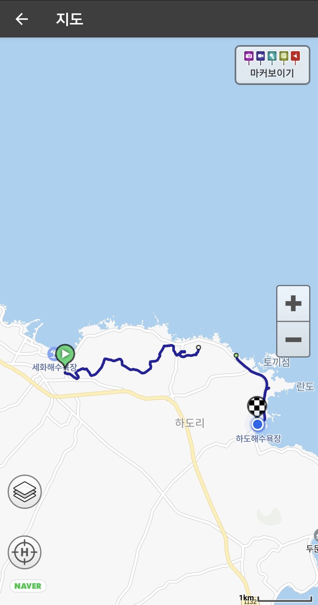 풍경에 취해서 너무 속도를 내지 못한 탓일까요? 어느덧 돌아가야 할 시간이 되었습니다. 아쉽게도 하도해수욕장에서 트레킹을 마무리해야겠군요.