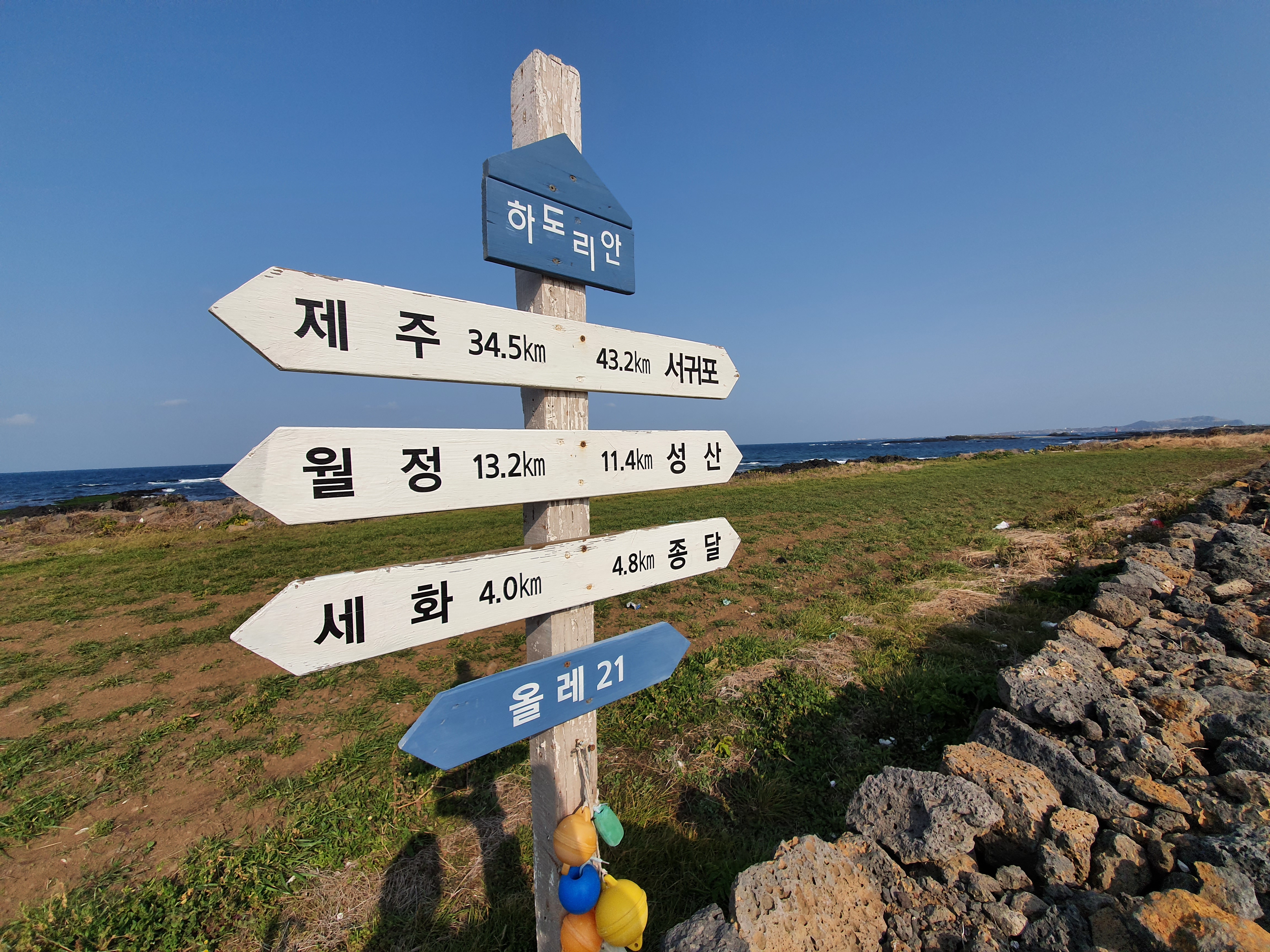 21코스 종점이자 최종 목적지인 종달바당까지는 약 5km 정도가 남았지만, 아쉬움을 뒤로하고 트레킹을 마무리합니다. 조만간 다시 기회가 있겠죠. 제주의 자연, 올레길이 너무나 좋습니다~!