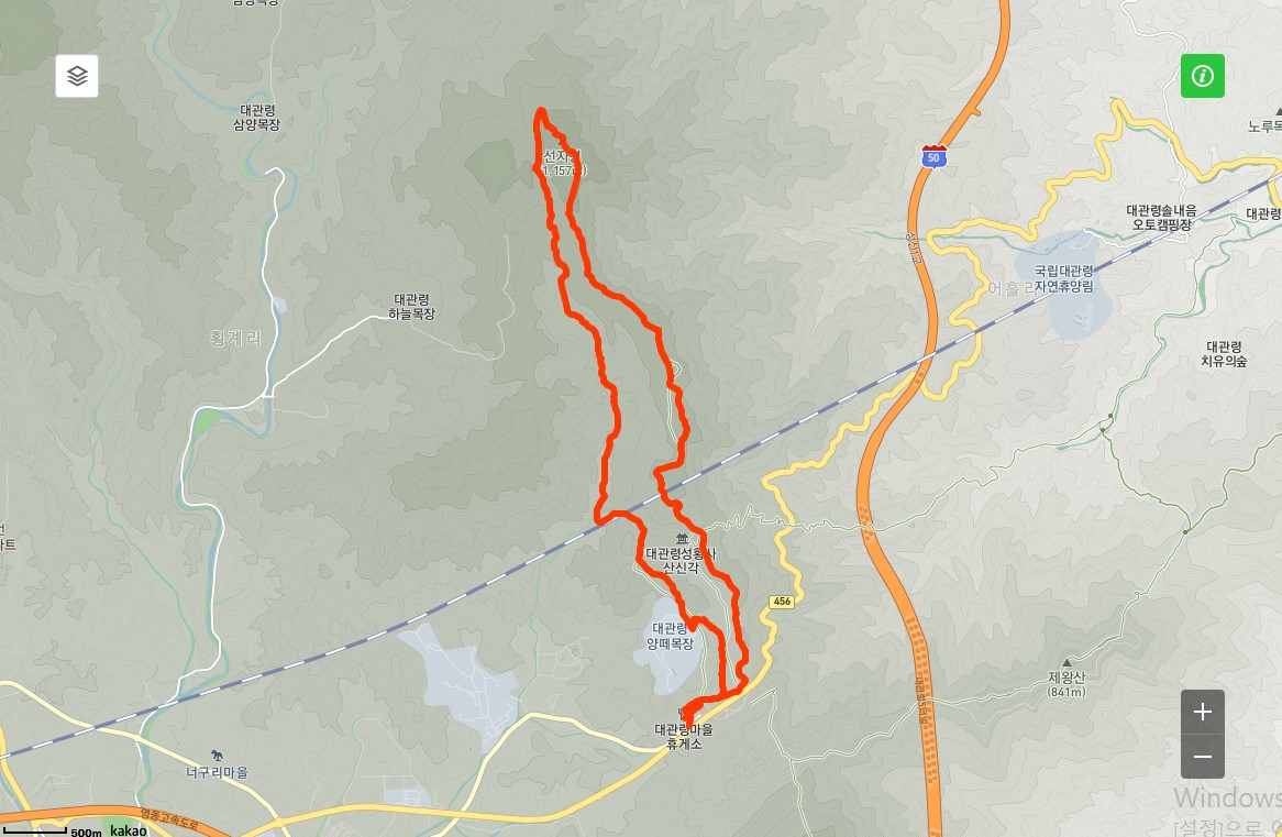 - 구 대관령휴게소(상)에서 출발해 구 대관령휴게소(상)까지 연결되는 등산로로서, 북쪽으로는 오대산의 노인봉, 남쪽으로는 능경봉과 연결되어 있는 비교적 쉬운 코스