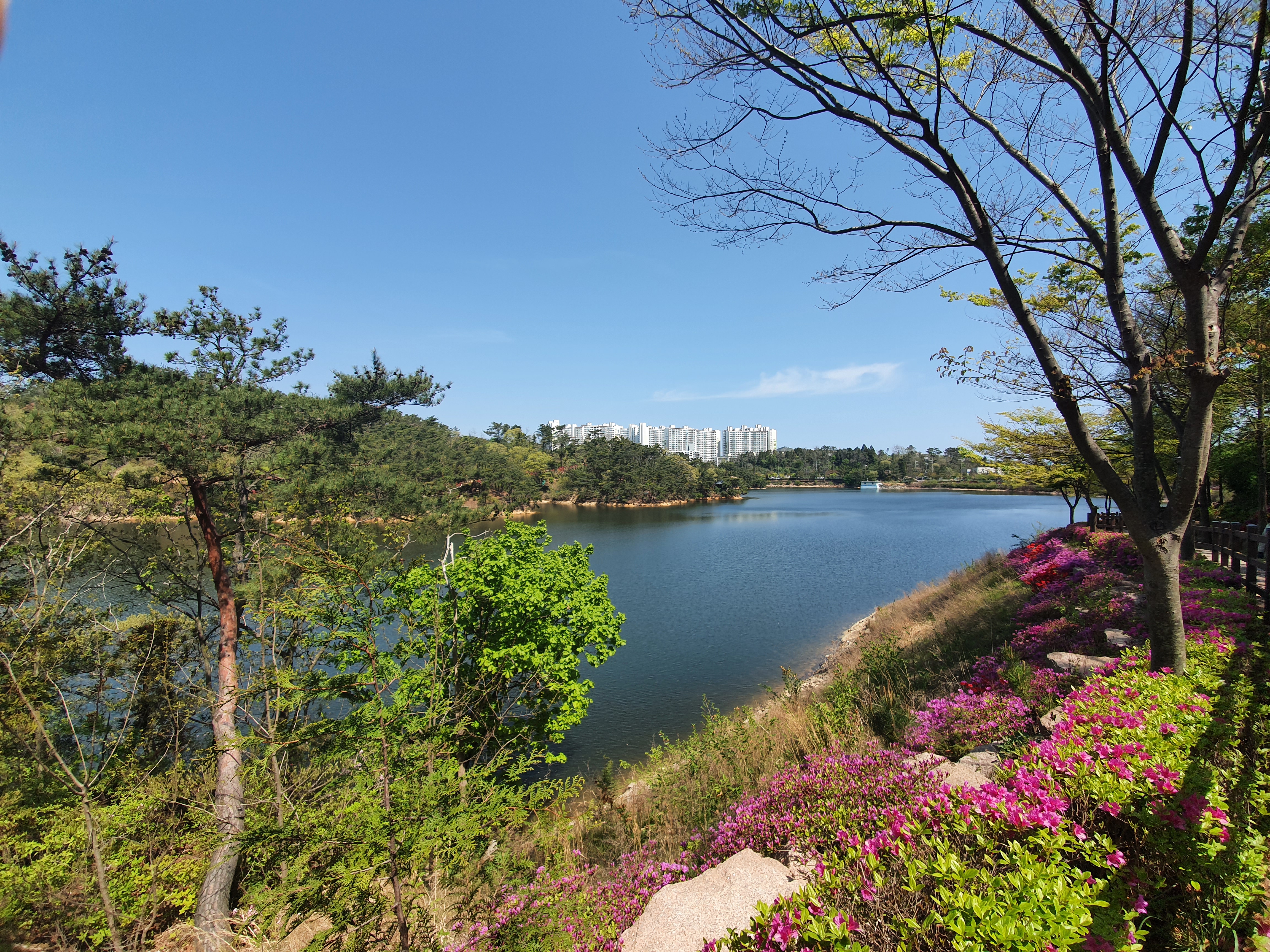 명덕 호수공원 방면으로 하산합니다. 해발고도는 높지 않지만, 산 위와 아래의 계절은 아주 미묘한 차이가 있는것 같네요.