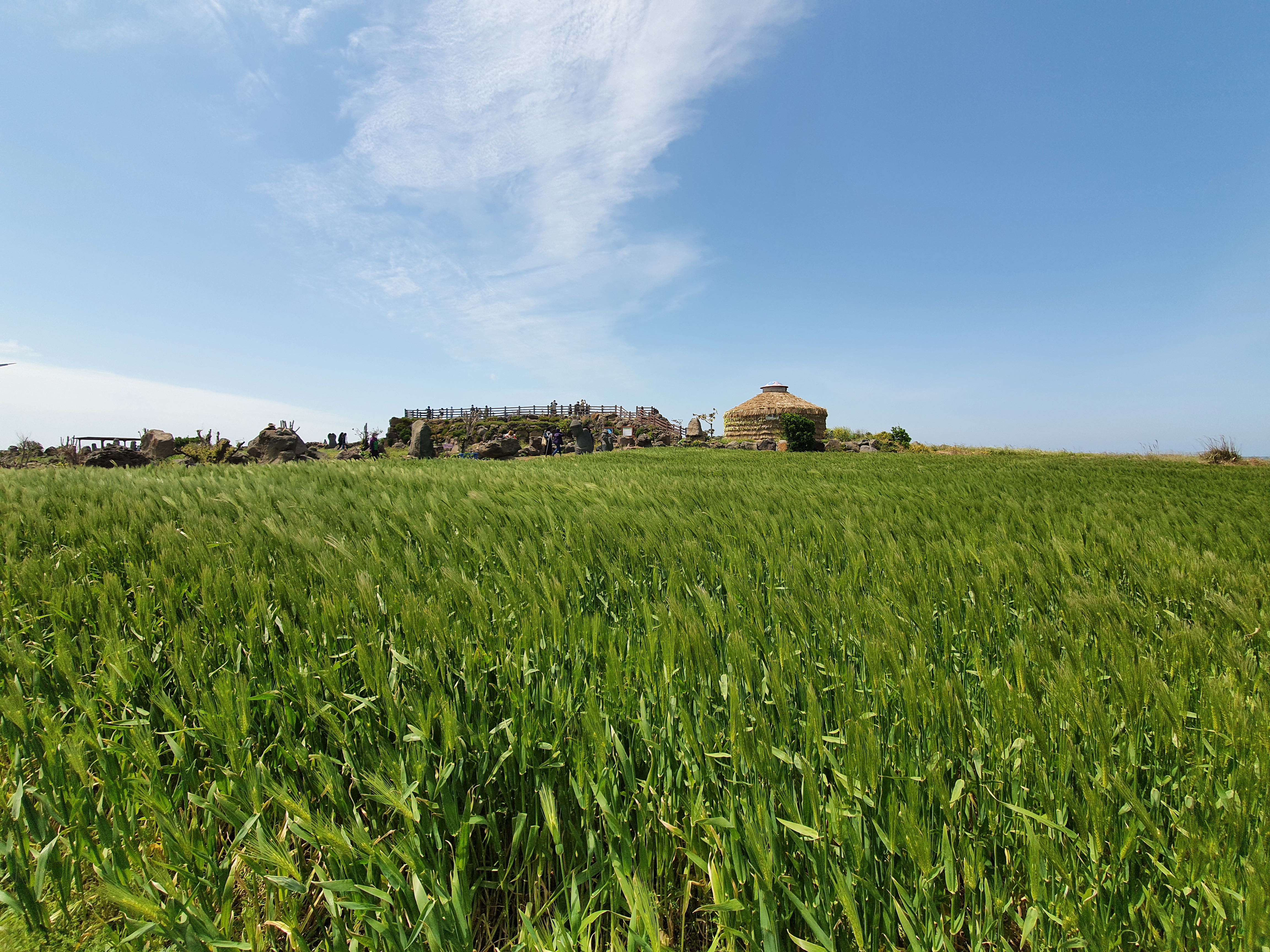 바람이 불때마다 청보리가 좌우로 일렁입니다. 길을 걸으며 사방에 펼쳐져 있는 청보리를 보고 있노라면, 마치 다른 세상에 와 있는 것 같은 느낌이 들어요.