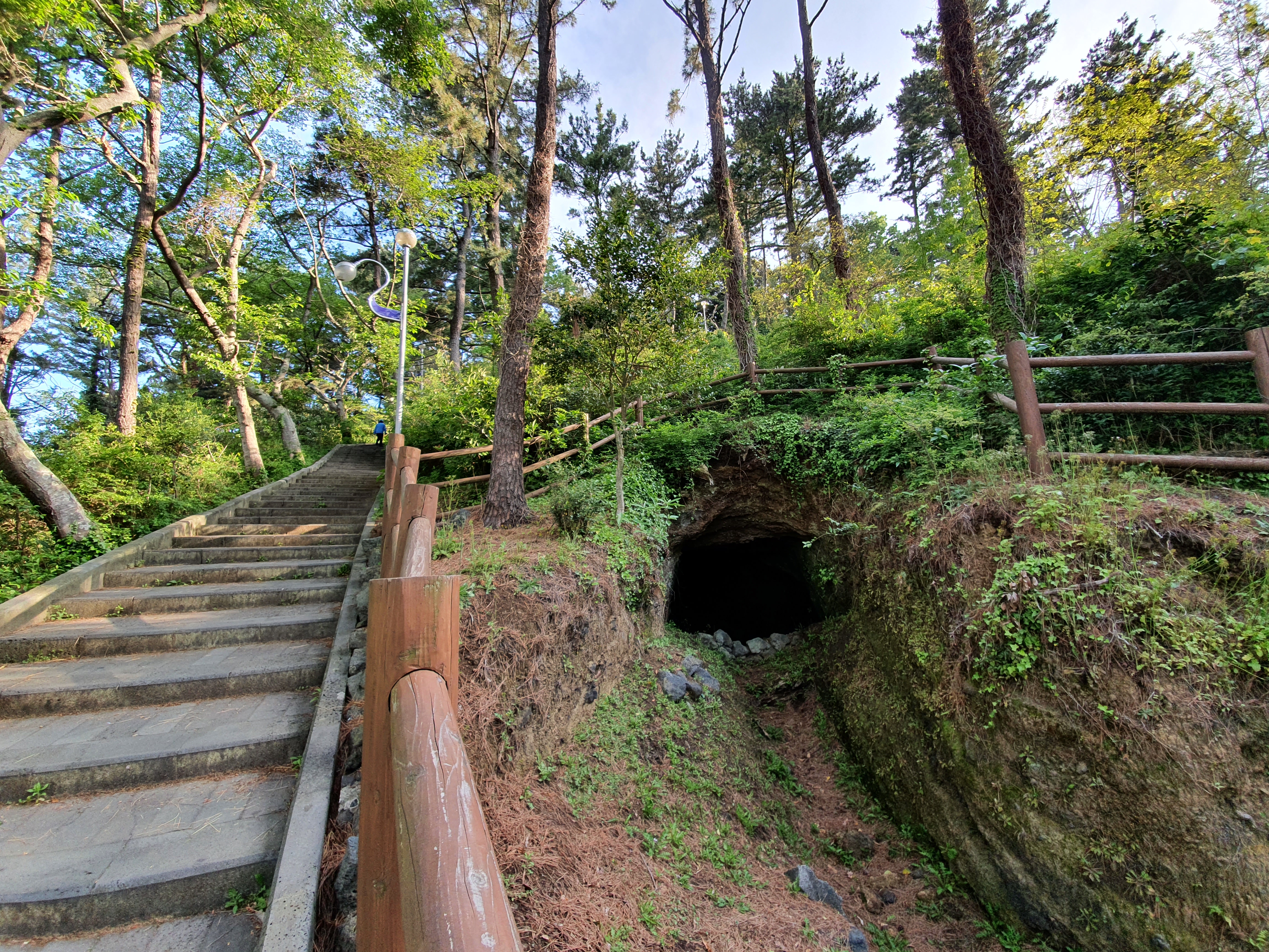 계단을 오르다보면 일제 진지동굴을 확인할 수 있습니다. 성산일출봉 정상, 송악산, 군산오름 등 제주의 주요한 장소 곳곳에서 찾아볼 수 있지요.
