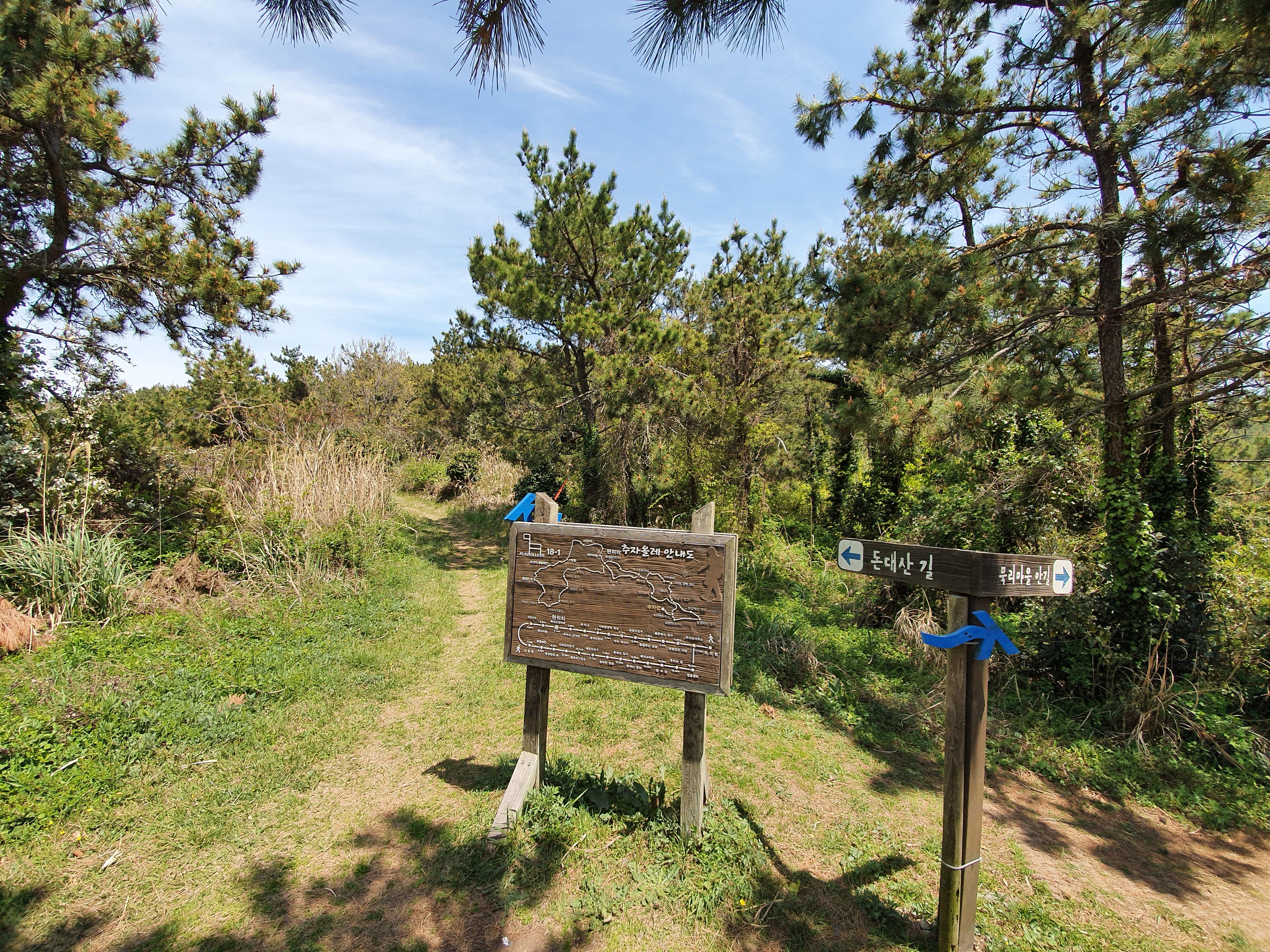 정면에서 만나게 되는 좌우 갈림길에서 기로에 서게 됩니다. 분명 나바론 하늘길이 끝내주는 포인트라는 건 알겠으나, 저길 들렀다 가게되면 당일치기 미션을 달성할 수 없다는 것을 알고 있죠. 그래서, 과감히 나바론은 버리고 올레길 화살표가 가리키는 왼쪽편으로 이동합니다.