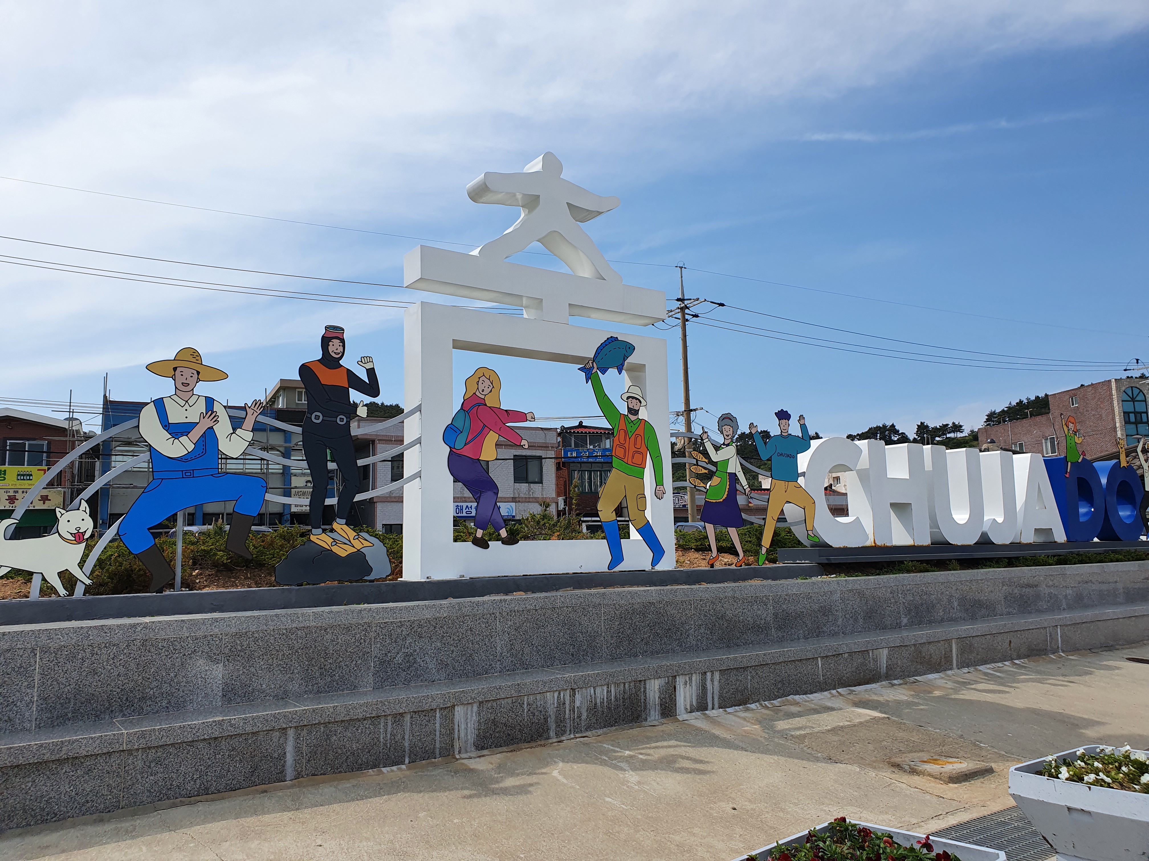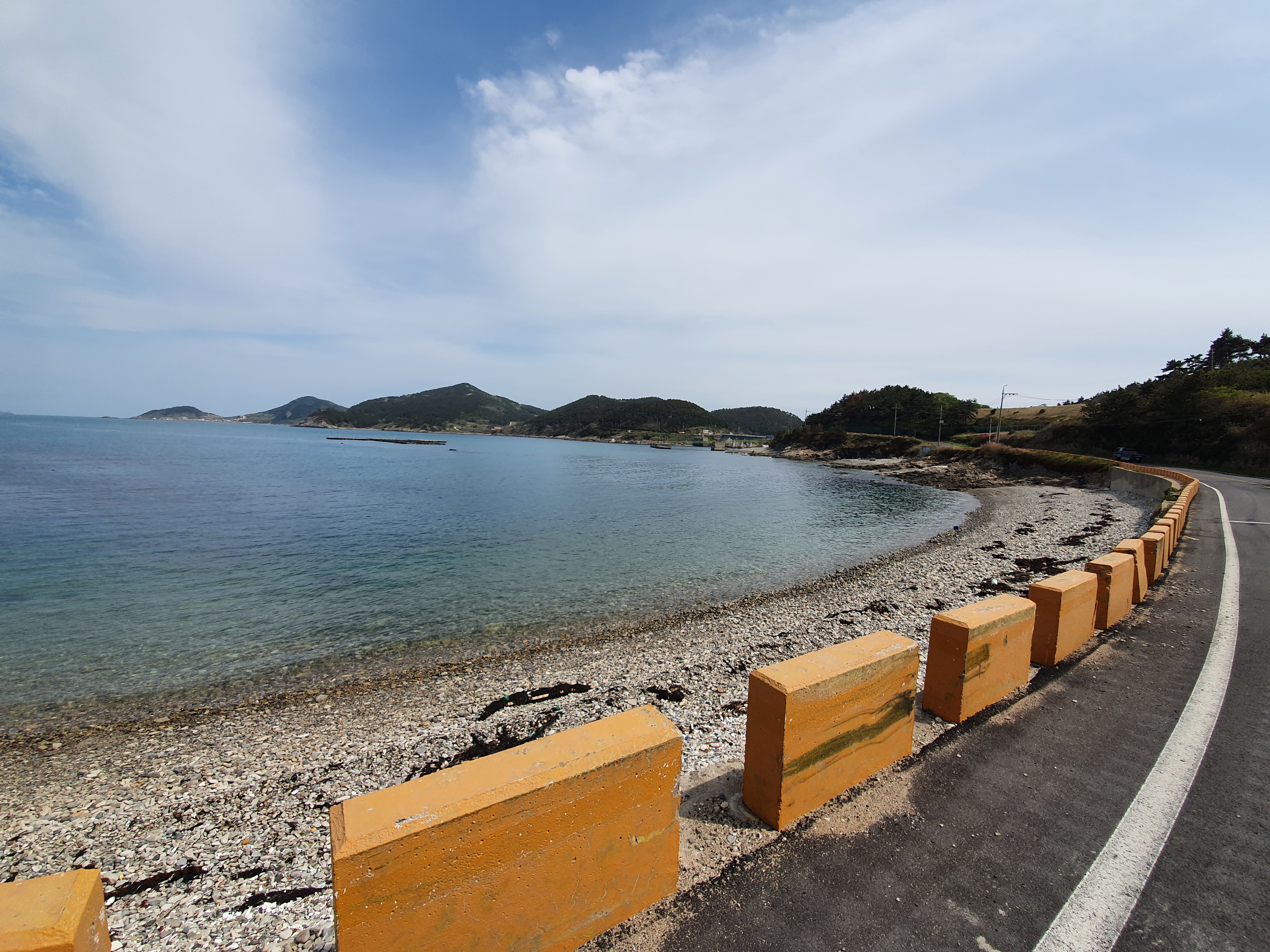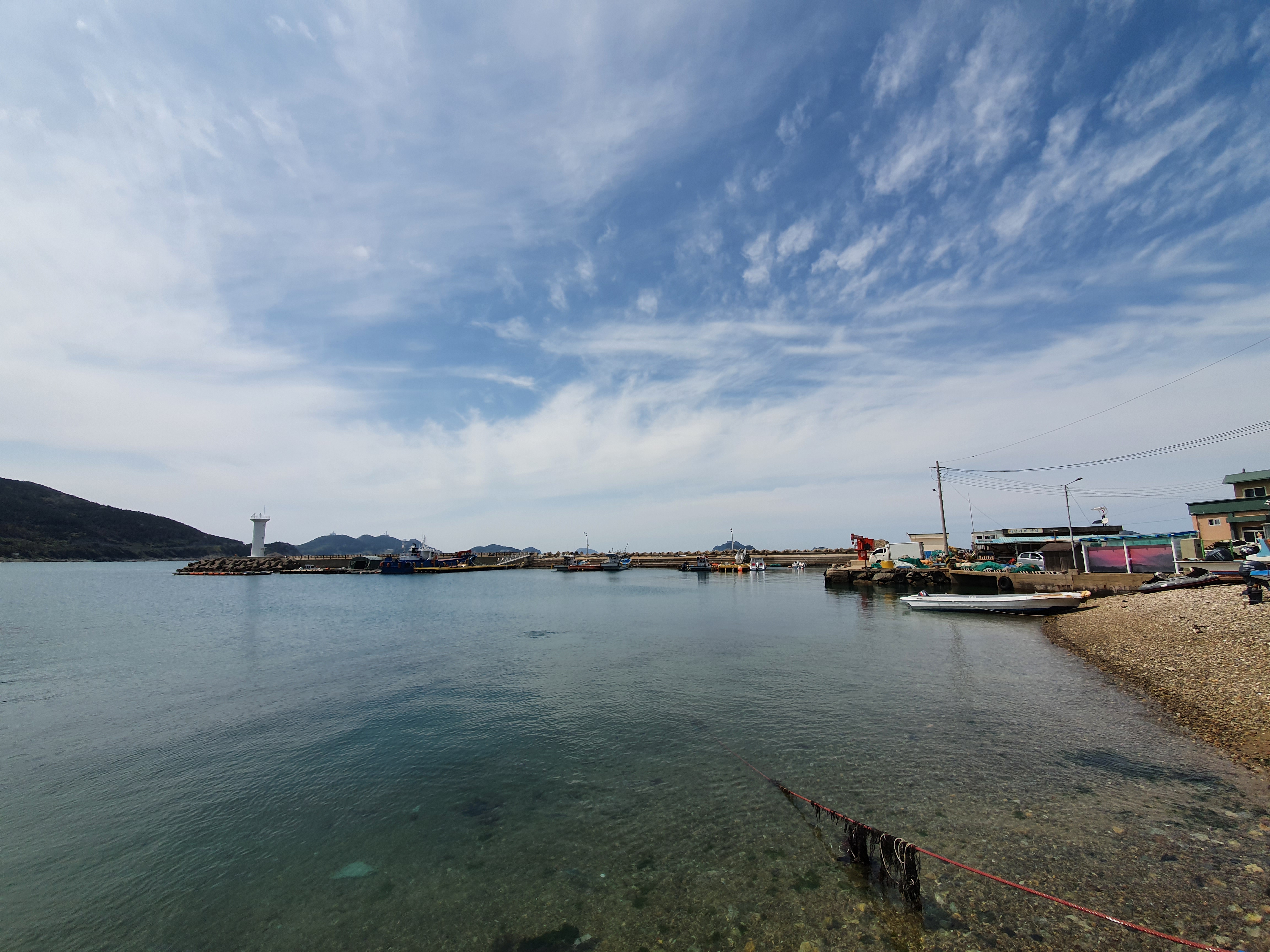모퉁이를 지나 커브를 도니 상추자항이 보입니다. 내내 이렇게 푸른 하늘을 볼 수 있어서 너무 좋았습니다.
