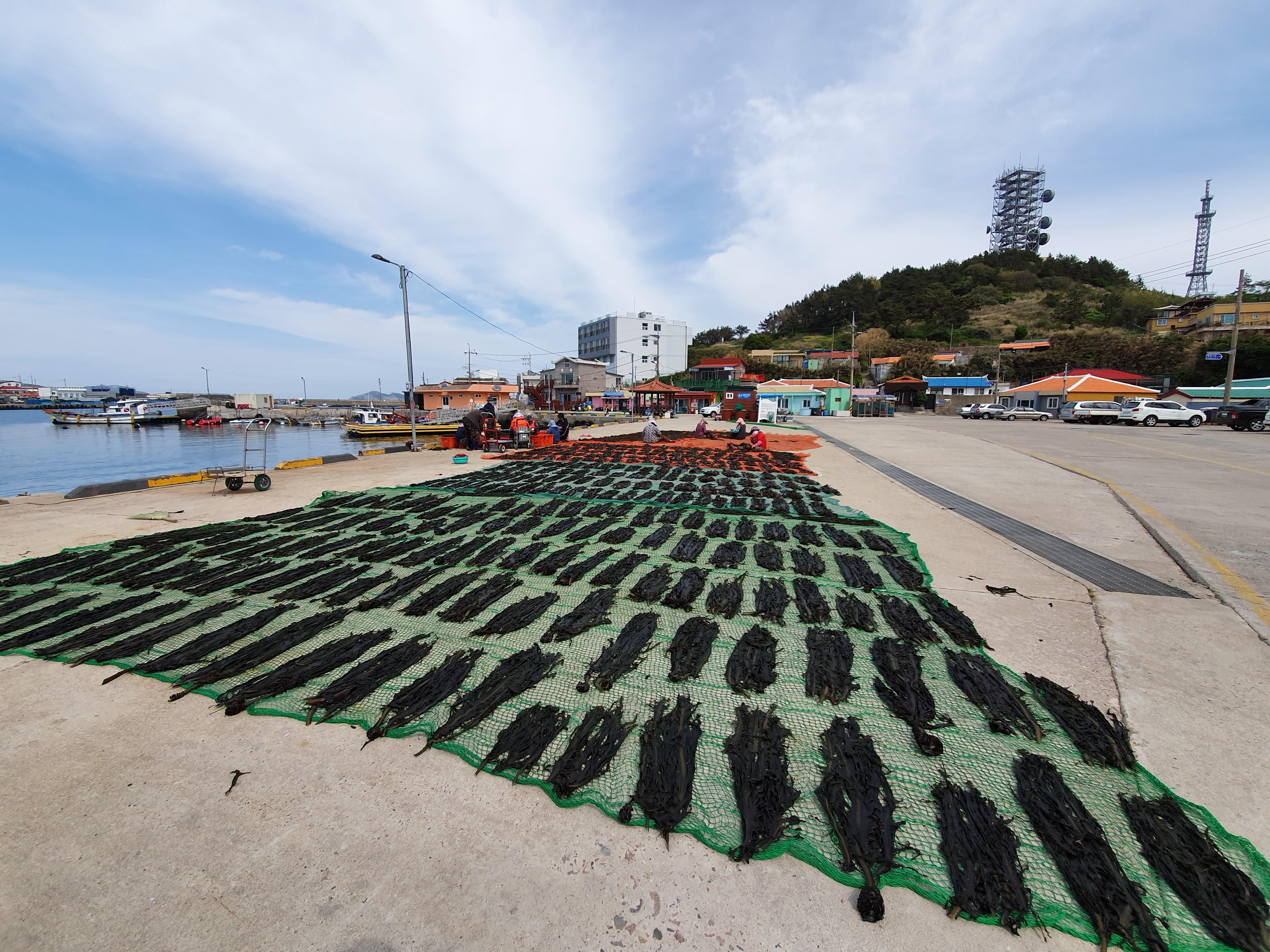 돌미역이 햇볕과 해풍을 맞으며 건조되고 있습니다. 추자도 돌미역;;; 아주 비쌉니다.