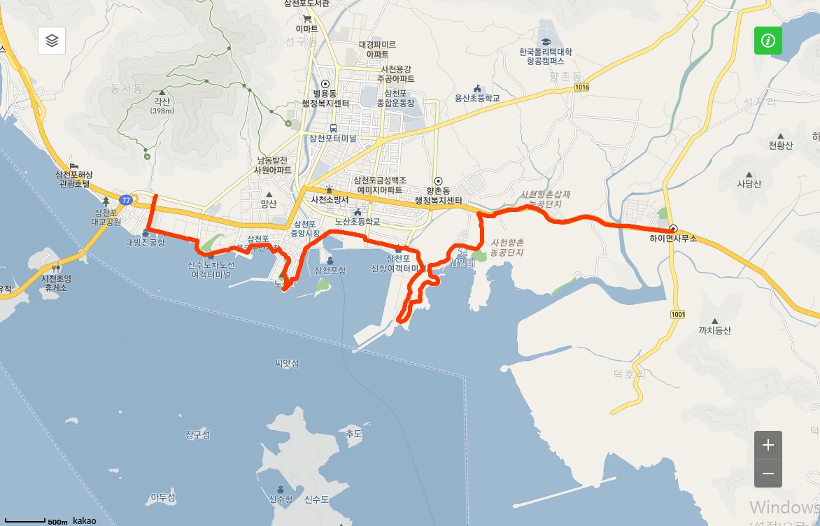 ## 고성 하이면사무소 - 남일대 해수욕장 - 삼천포 신항 - 노산공원 - 삼천포 용궁시장 - 삼천포대교 사거리