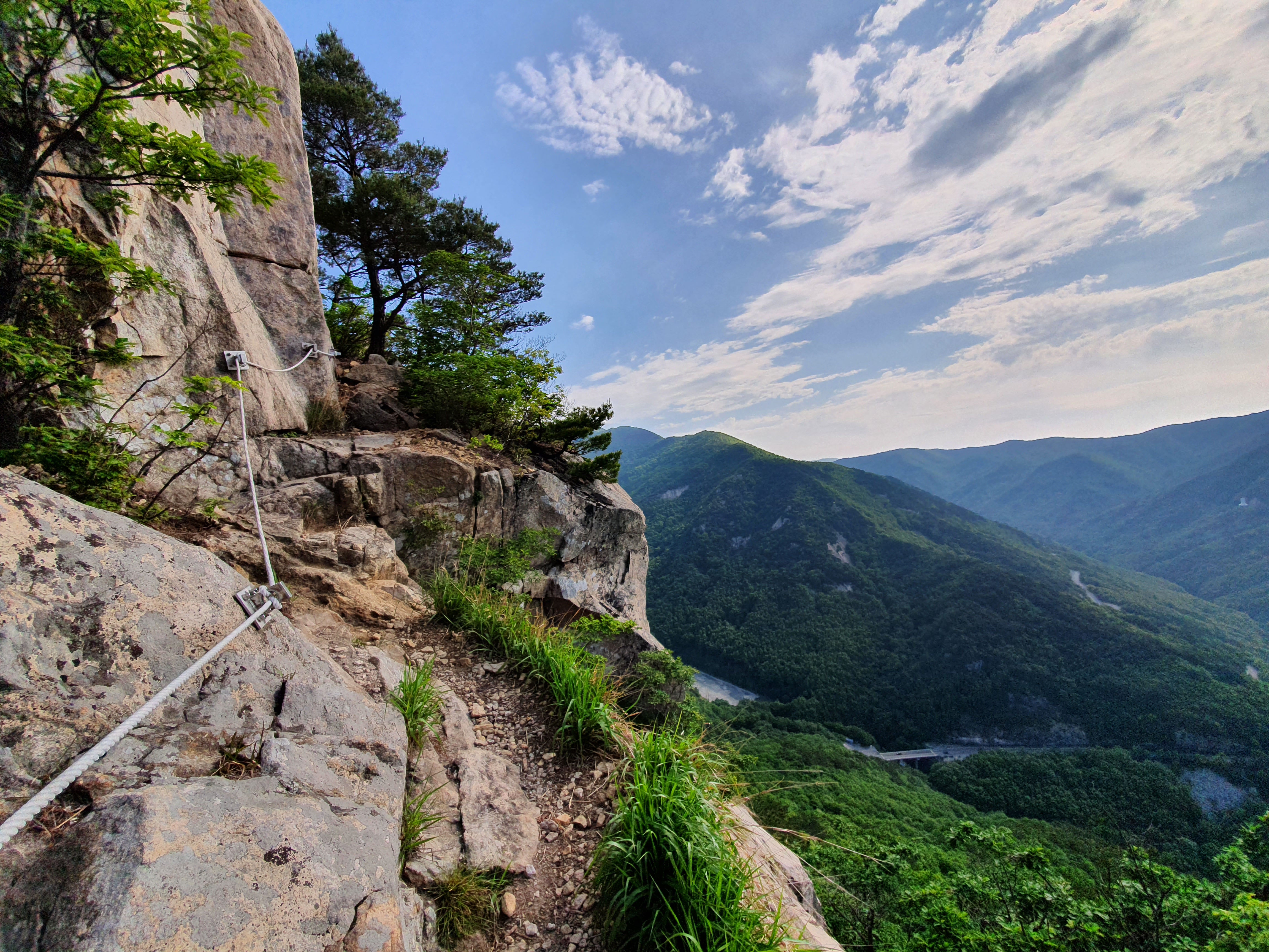 아기자기 하면서도 재미있는 암릉길이 계속해서 이어집니다. 오른쪽은 까마득한 낭떠러지인데, 이렇게 로프를 잡고 앞으로 전진하면 사실 좀 많이 후덜덜해요 ㅠㅜ