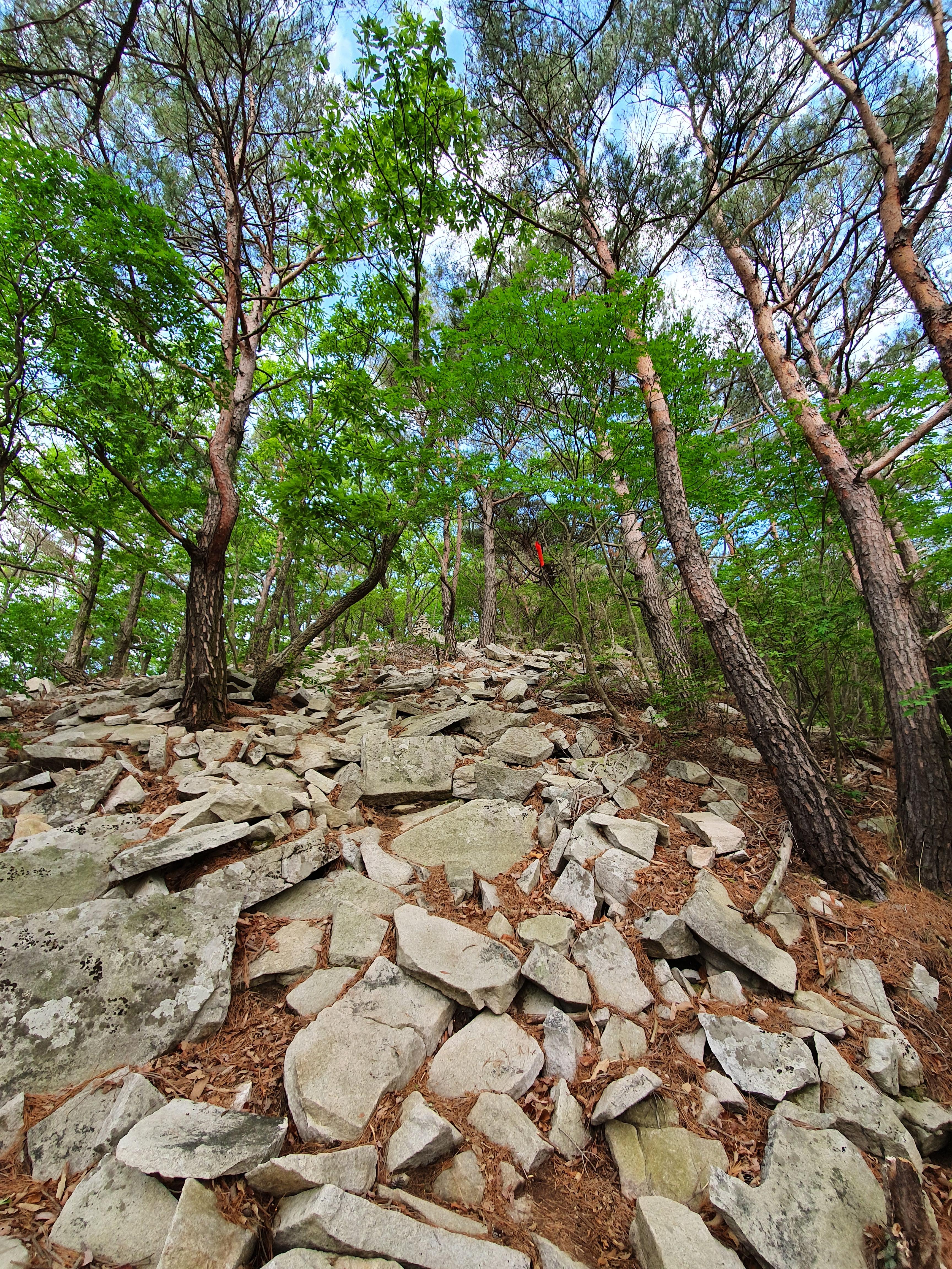 격파된(?) 돌무더기를 밟아가며 급격하게 고도를 높히게 됩니다. 돌이 흔들리거나 자칫 발목을 접지를 수 있으므로 각별한 주의가 필요한 구간이죠.