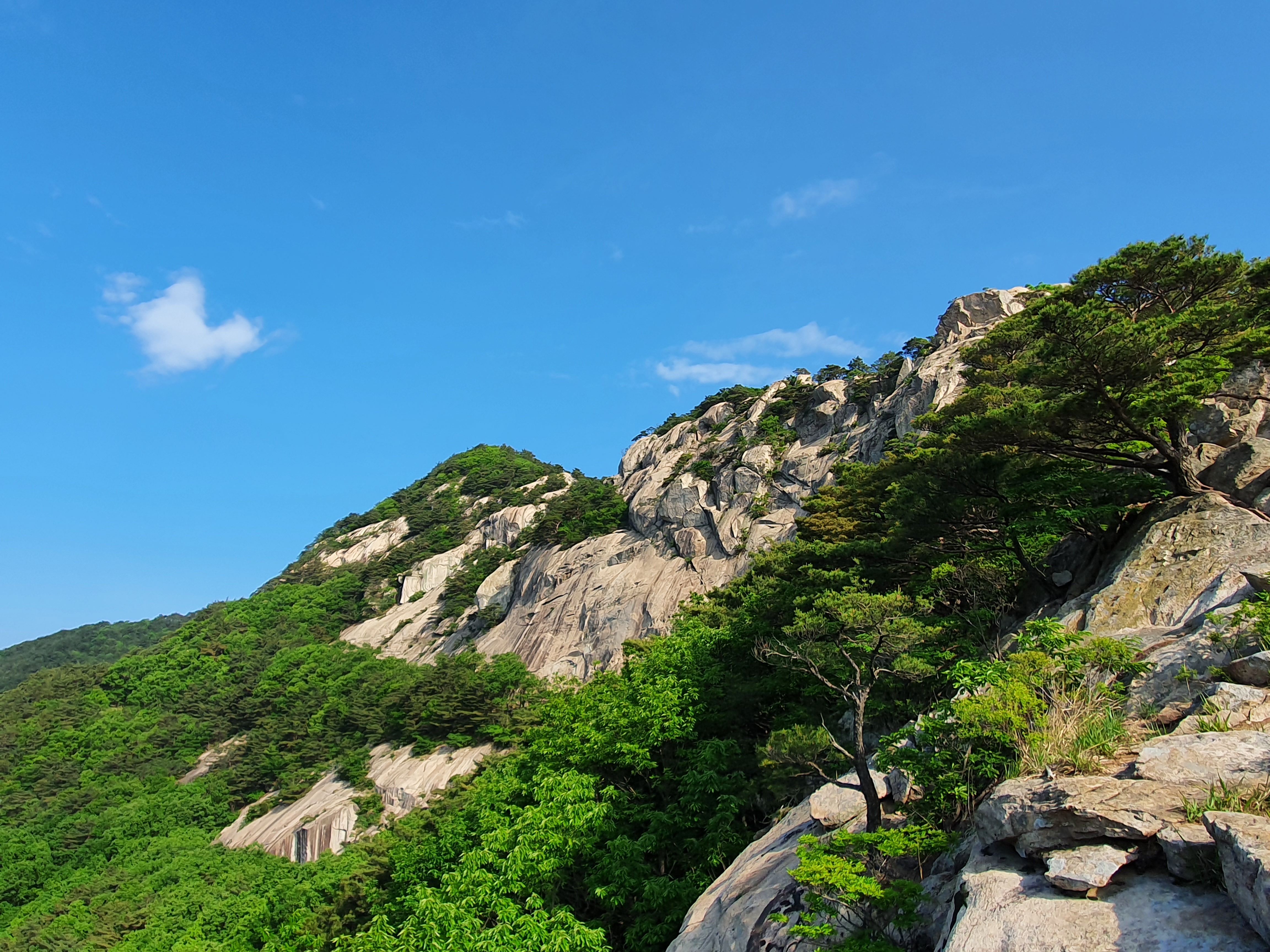 호랑이 꼬리 부분을 따라 엉덩이(?) 윗쪽으로 올라갑니다. 바위가 많은 산은 멋진 조망을 보여주지만, 햇볕이 쨍하게 내리쬐는 날에는 상당히 어려움을 겪게 되니 사전 준비를 잘 해야 할 것 같네요.